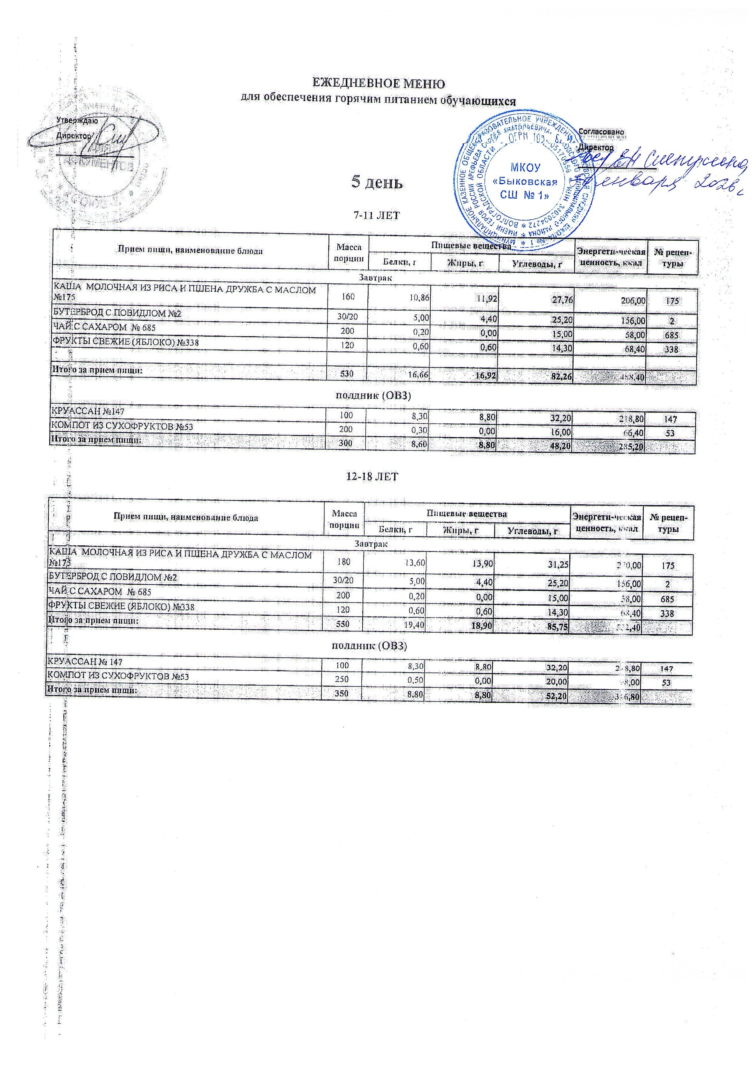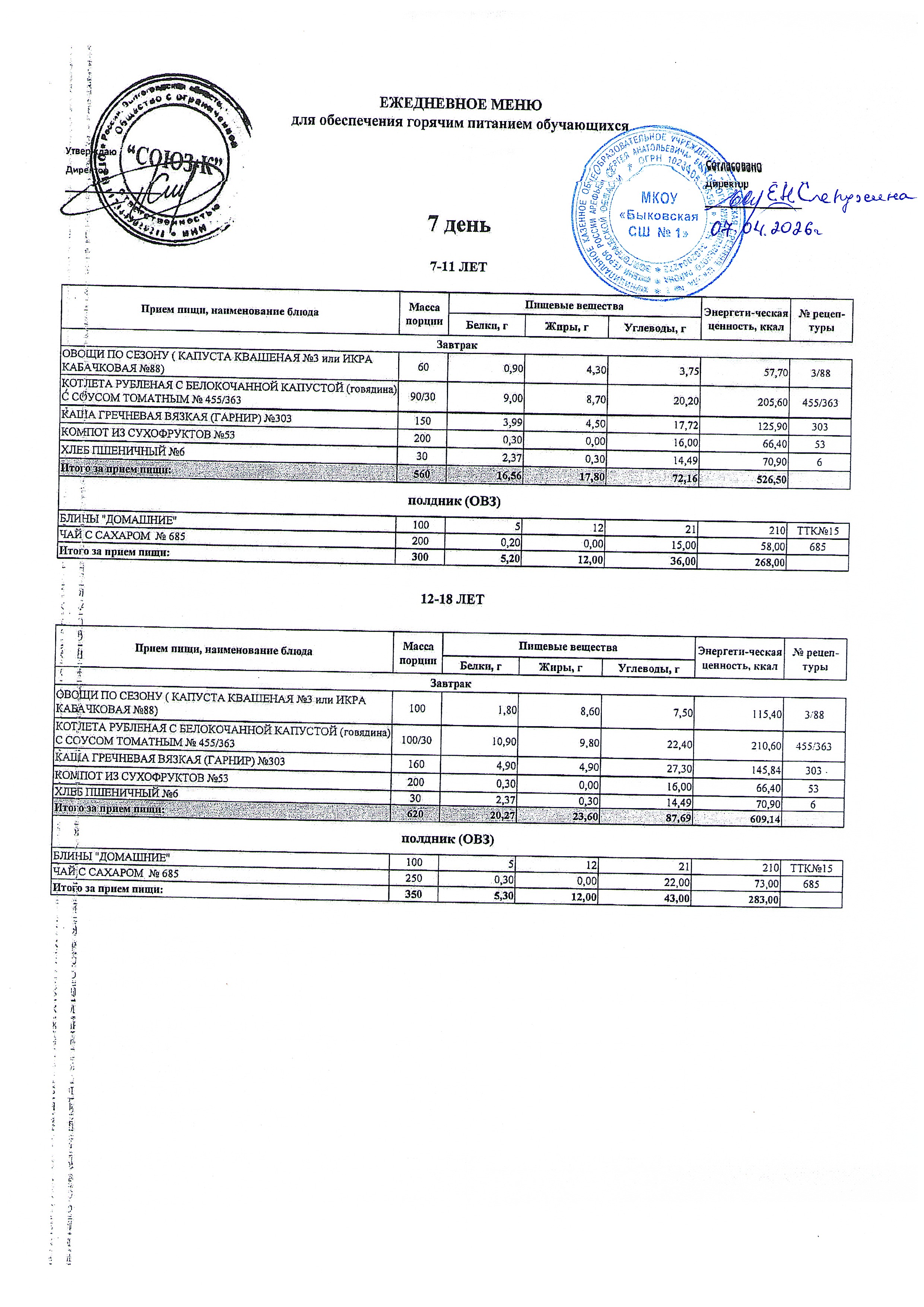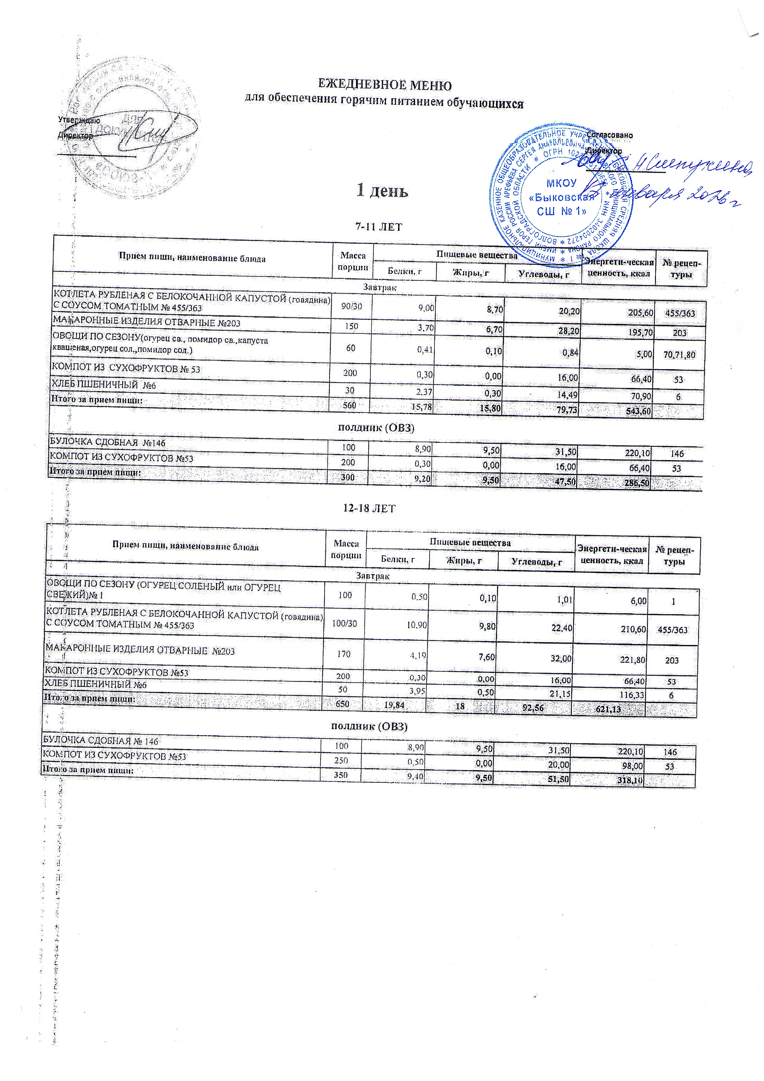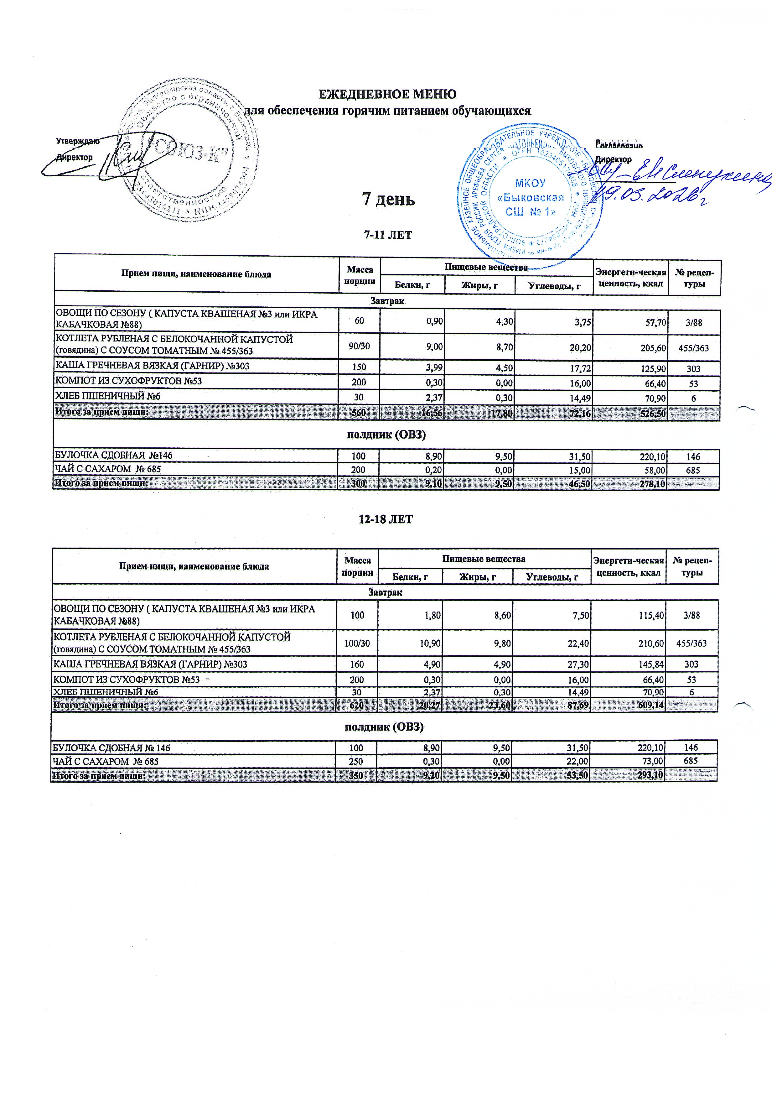 - МЕНЮ ОВЗ ИНВАЛИДЫ 7-11 ЛЕТ