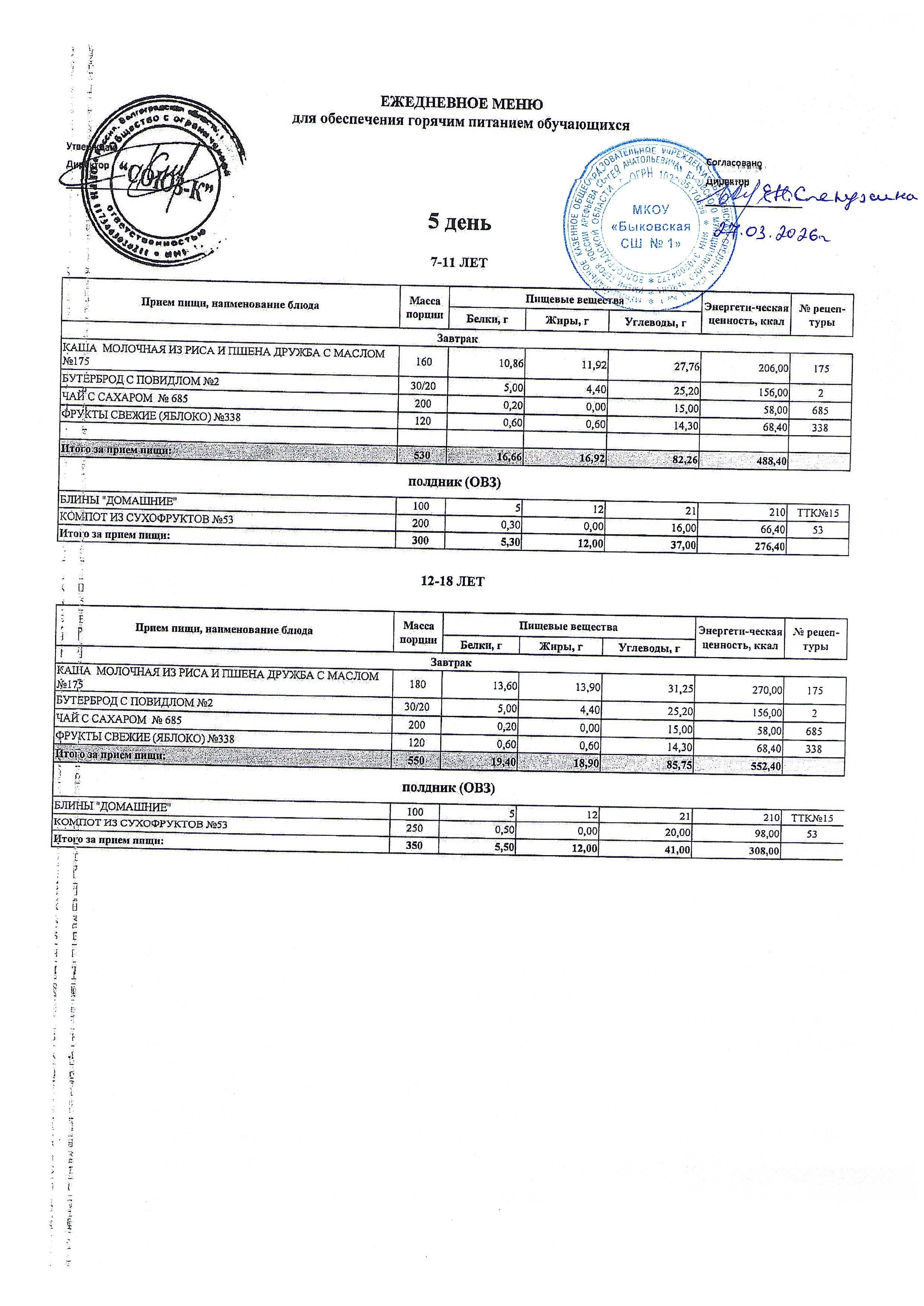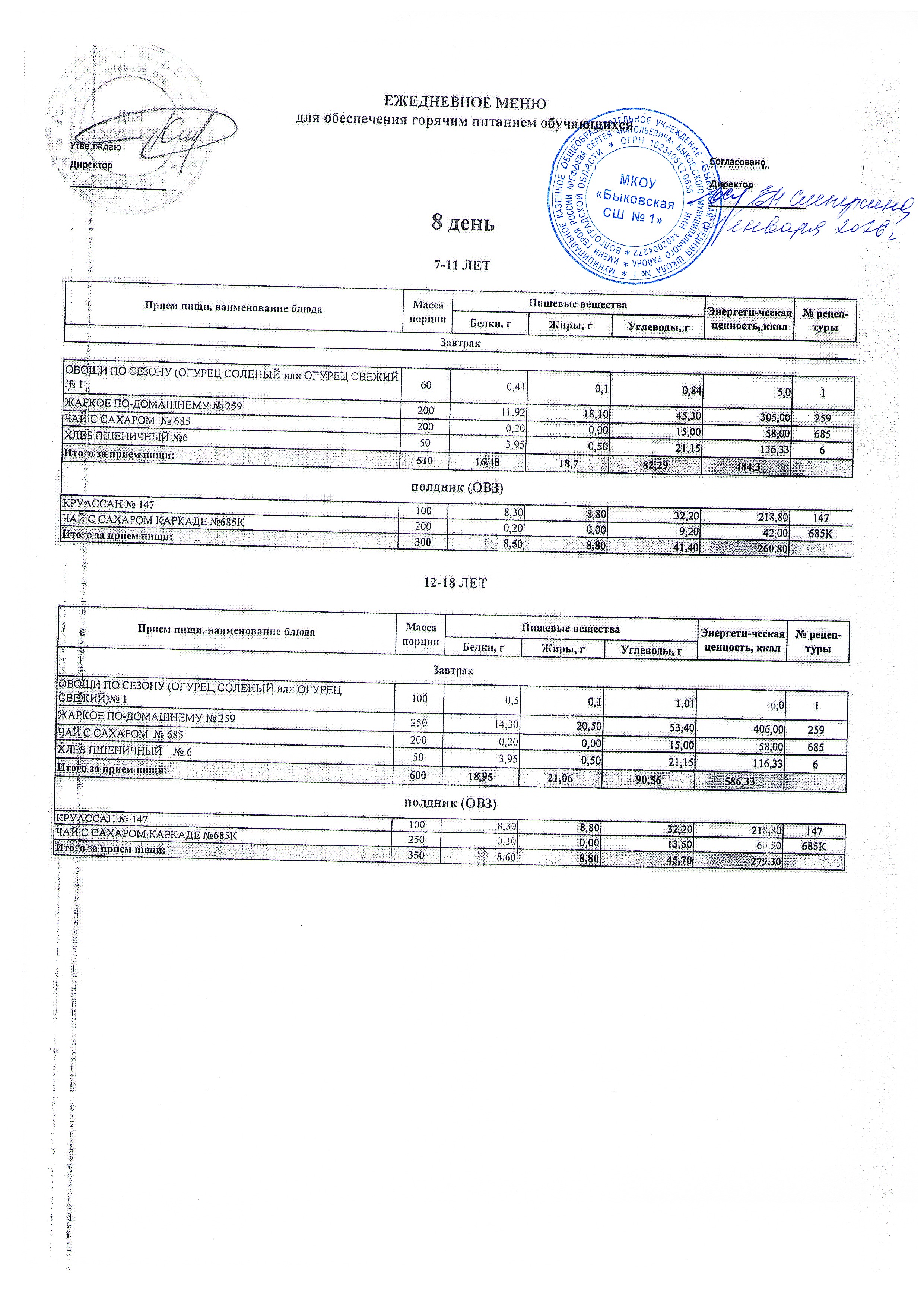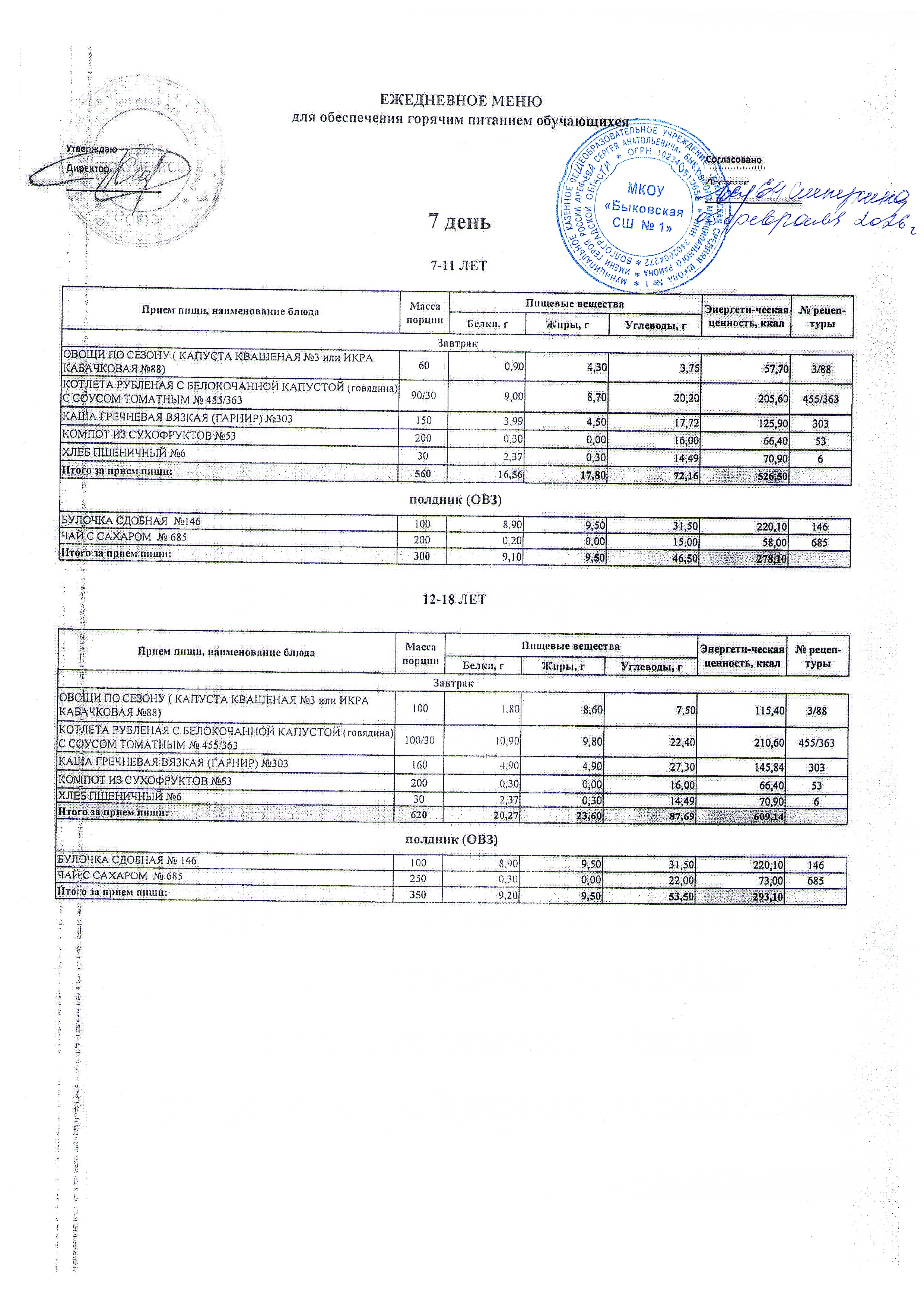 - МЕНЮ ОВЗ ИНВАЛИДЫ 7-11 ЛЕТ