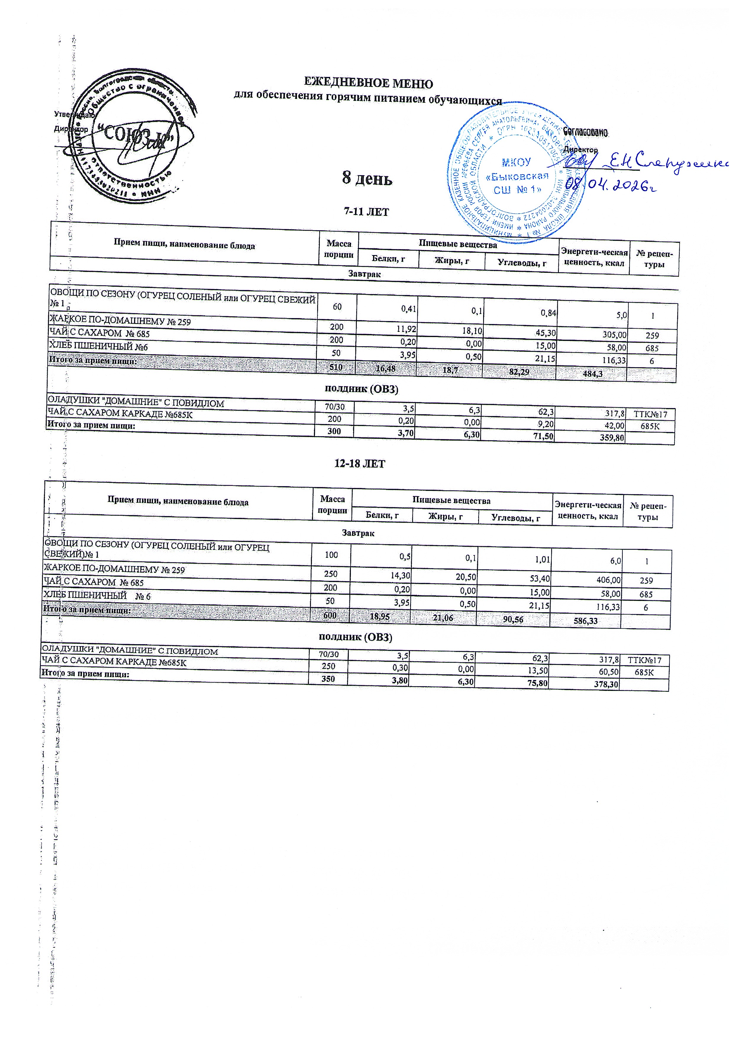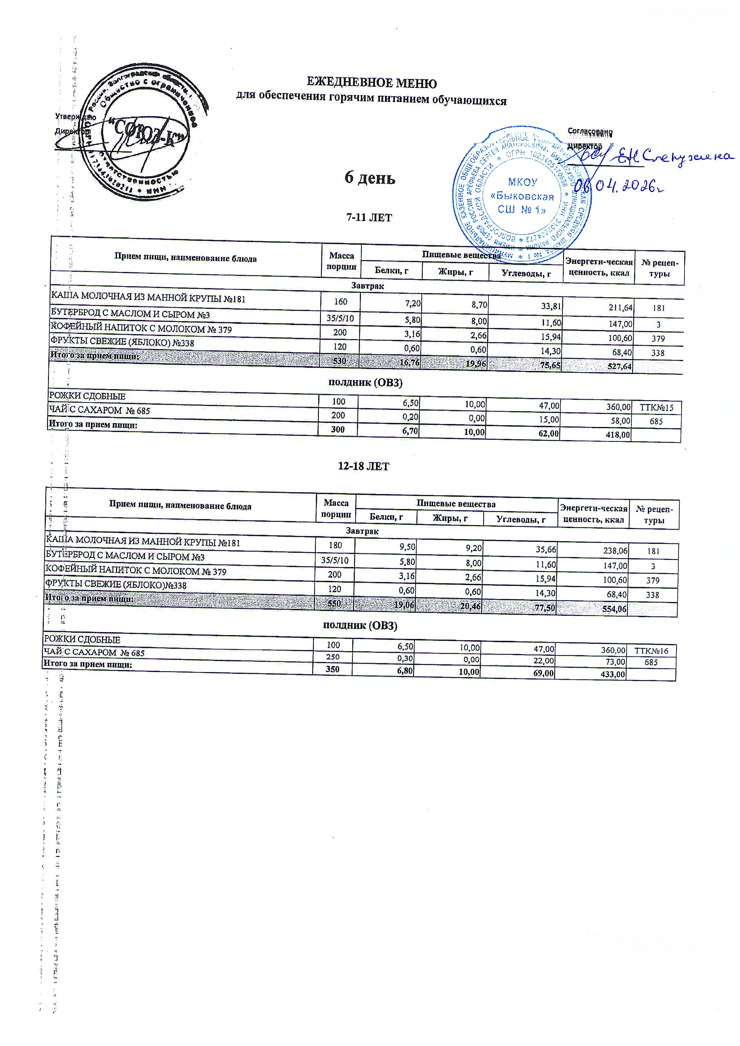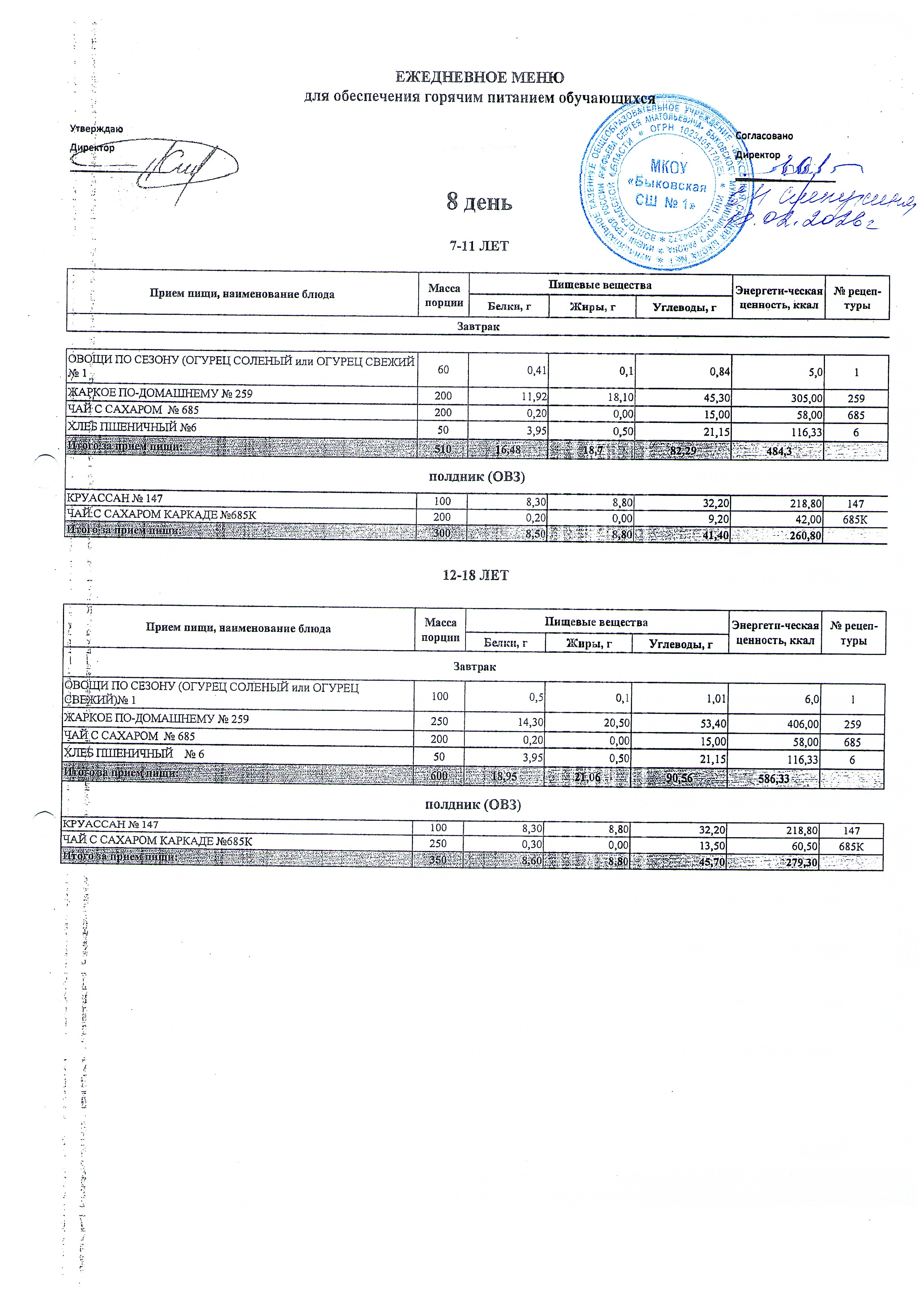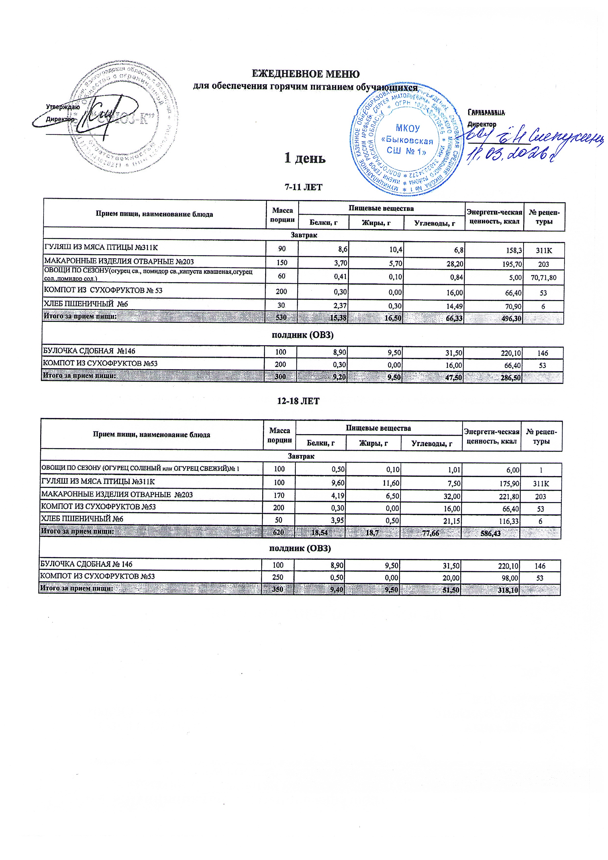 - МЕНЮ ОВЗ ИНВАЛИДЫ 7-11 ЛЕТ