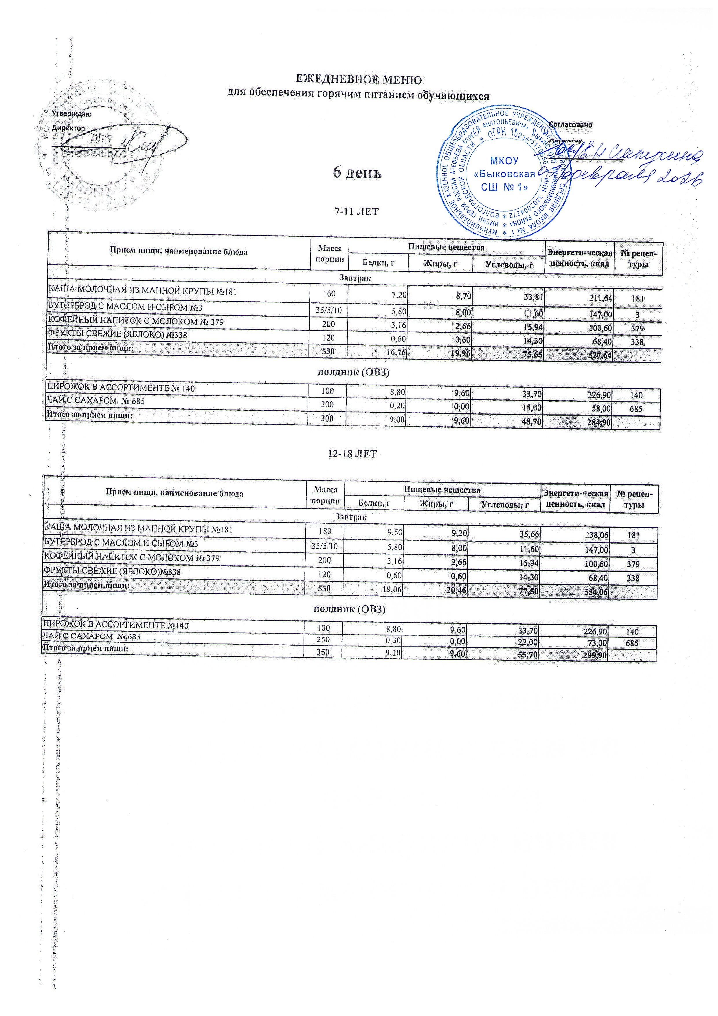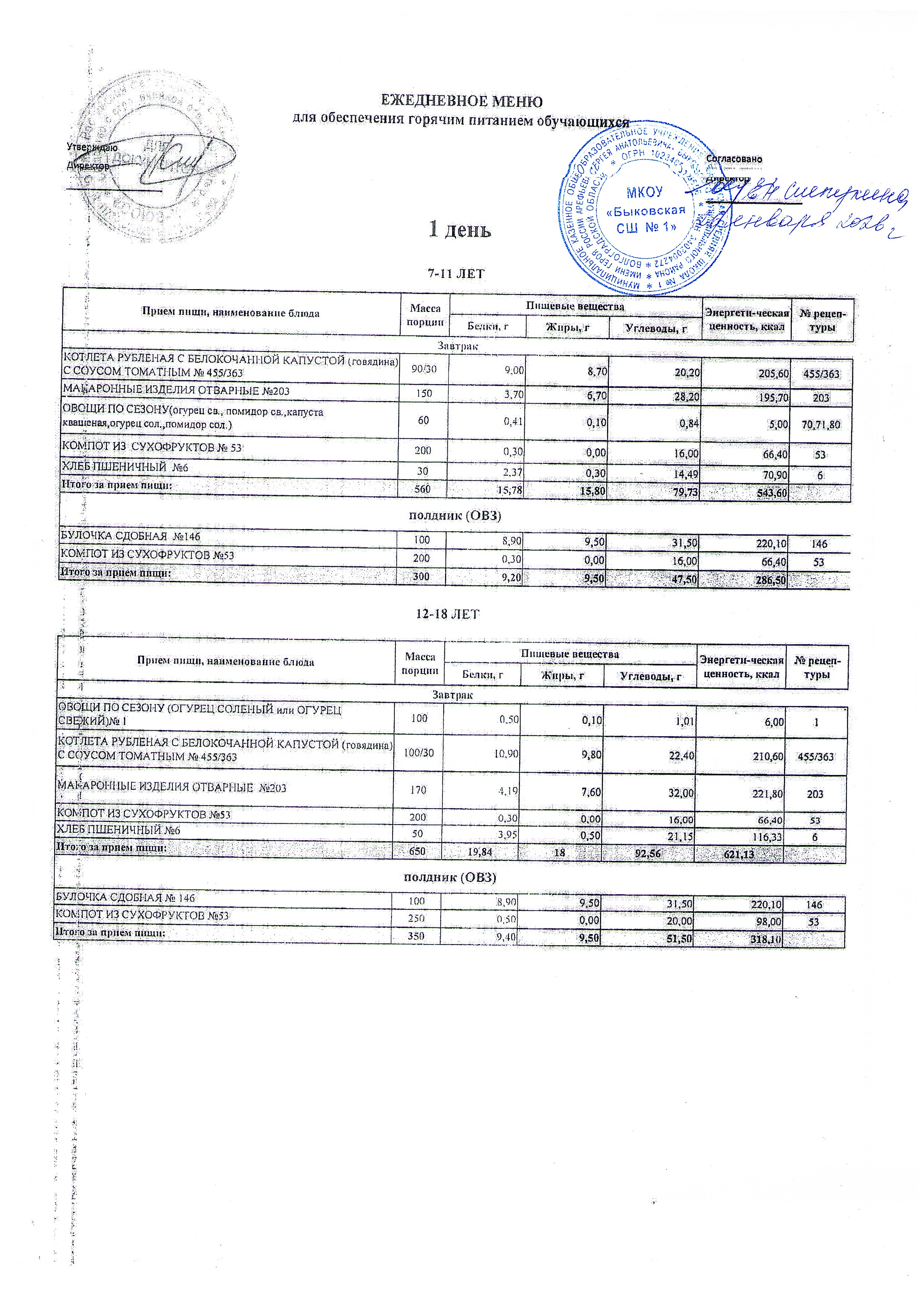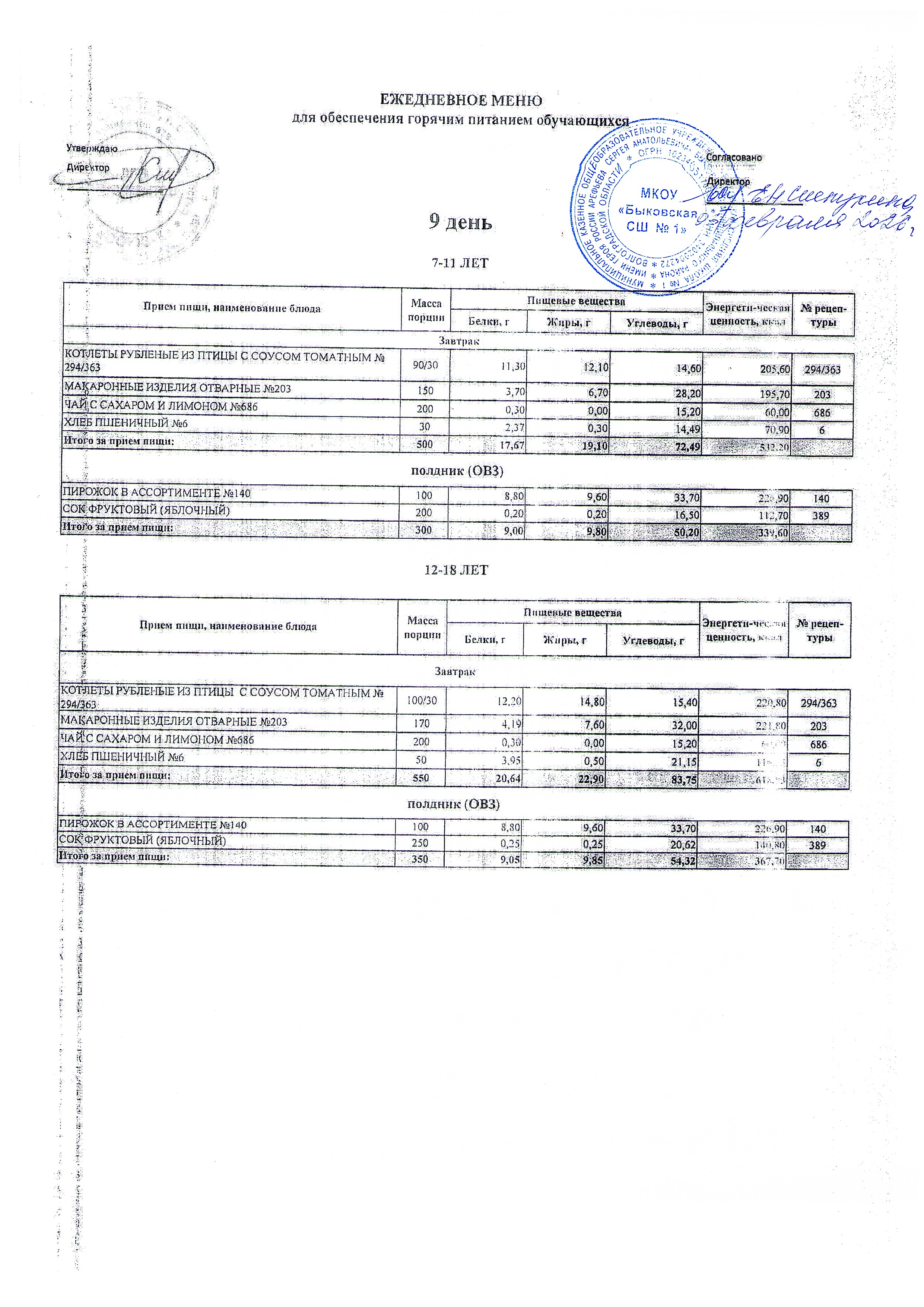 - МЕНЮ ОВЗ ИНВАЛИДЫ 12-18 ЛЕТ