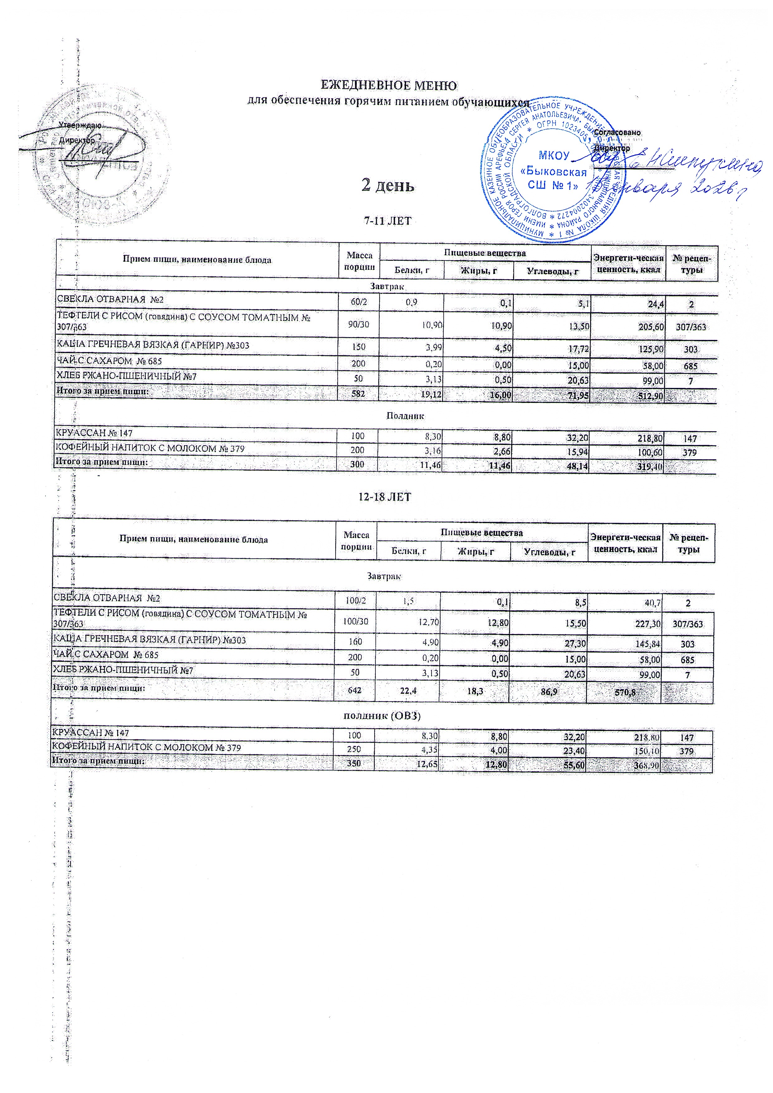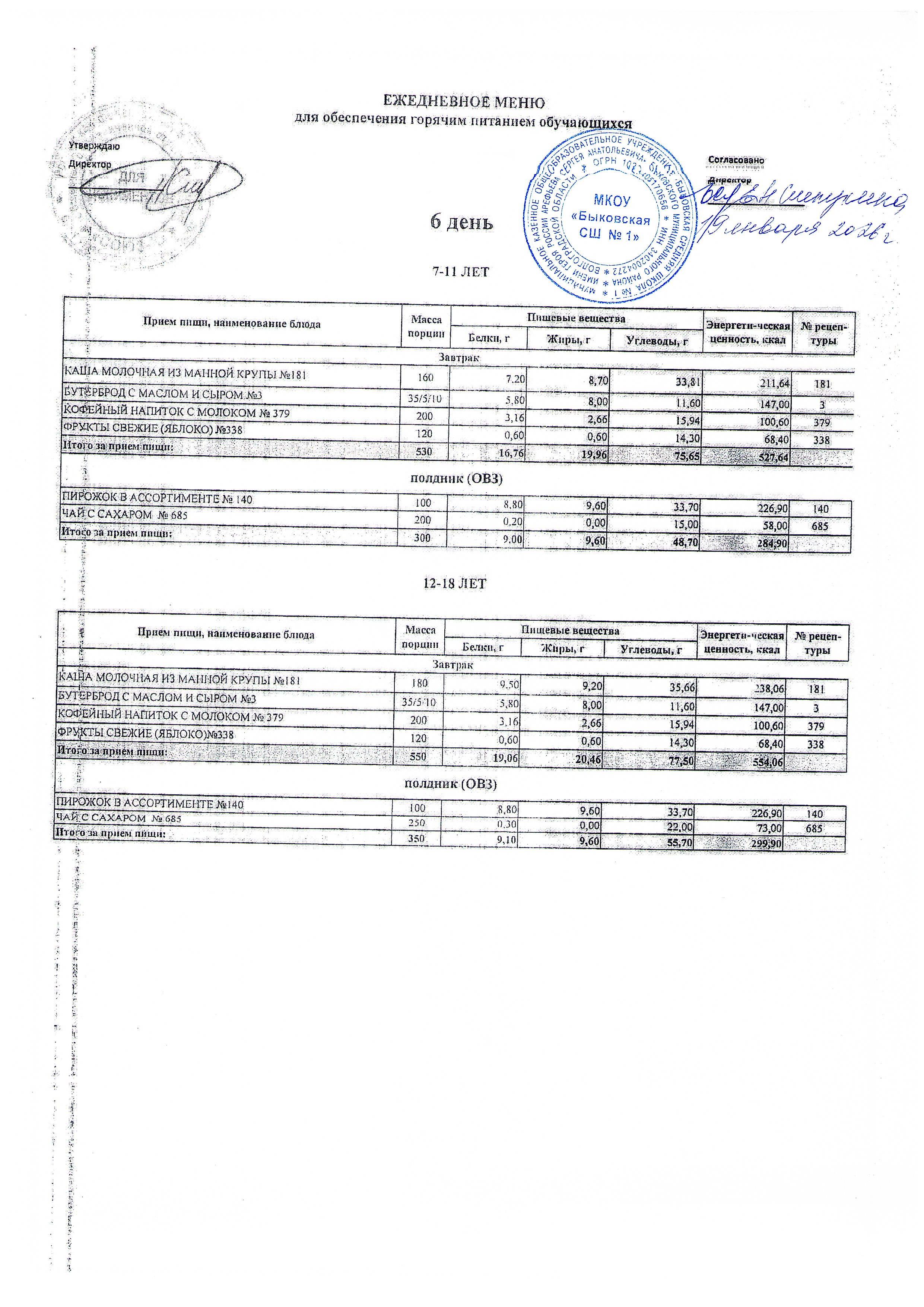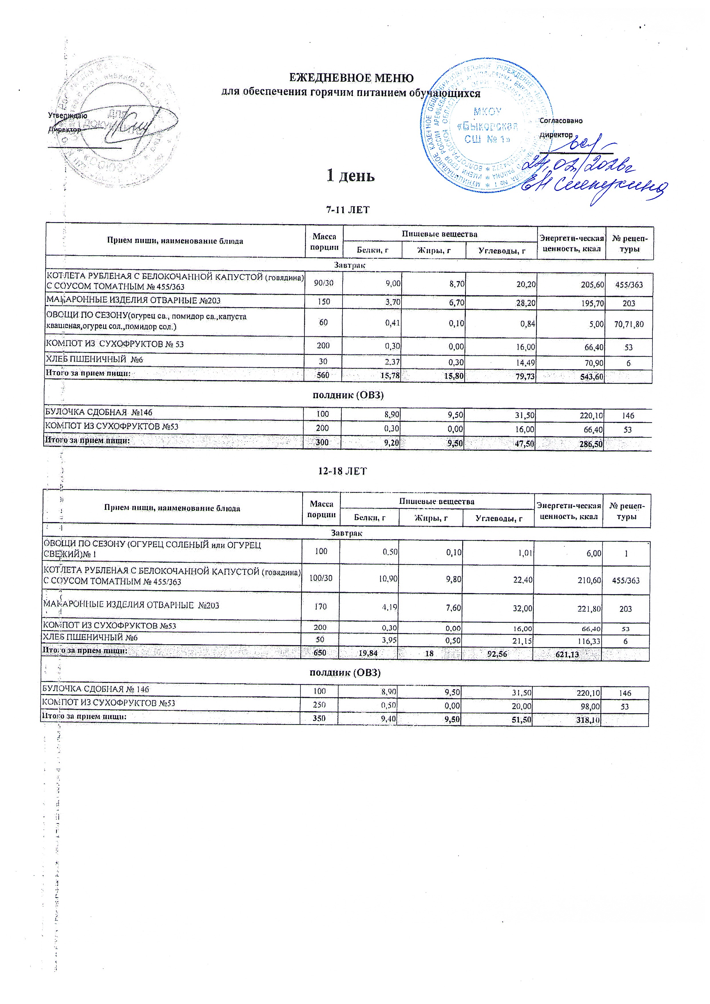- МЕНЮ ОВЗ ИНВАЛИДЫ 12-18 ЛЕТ
