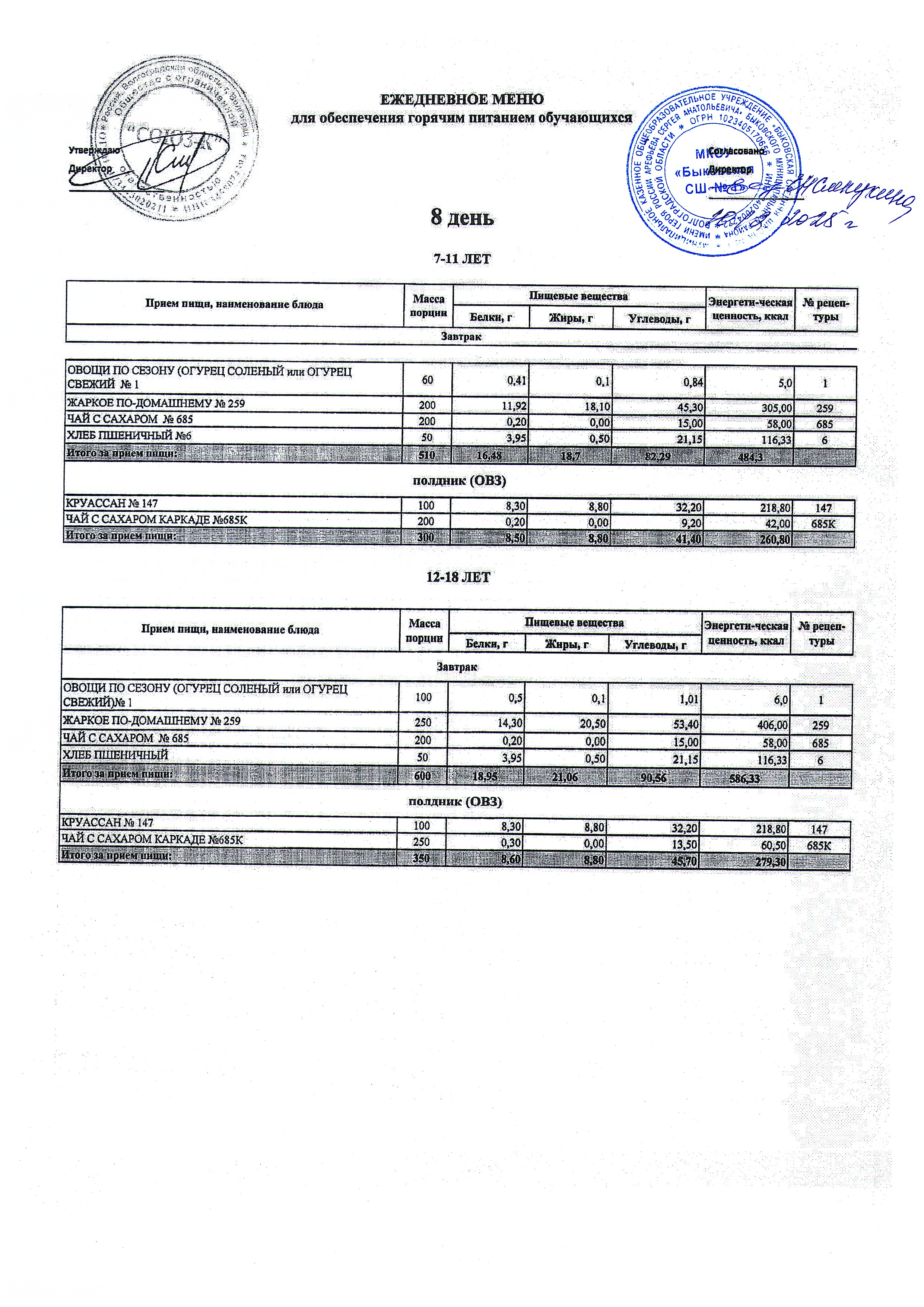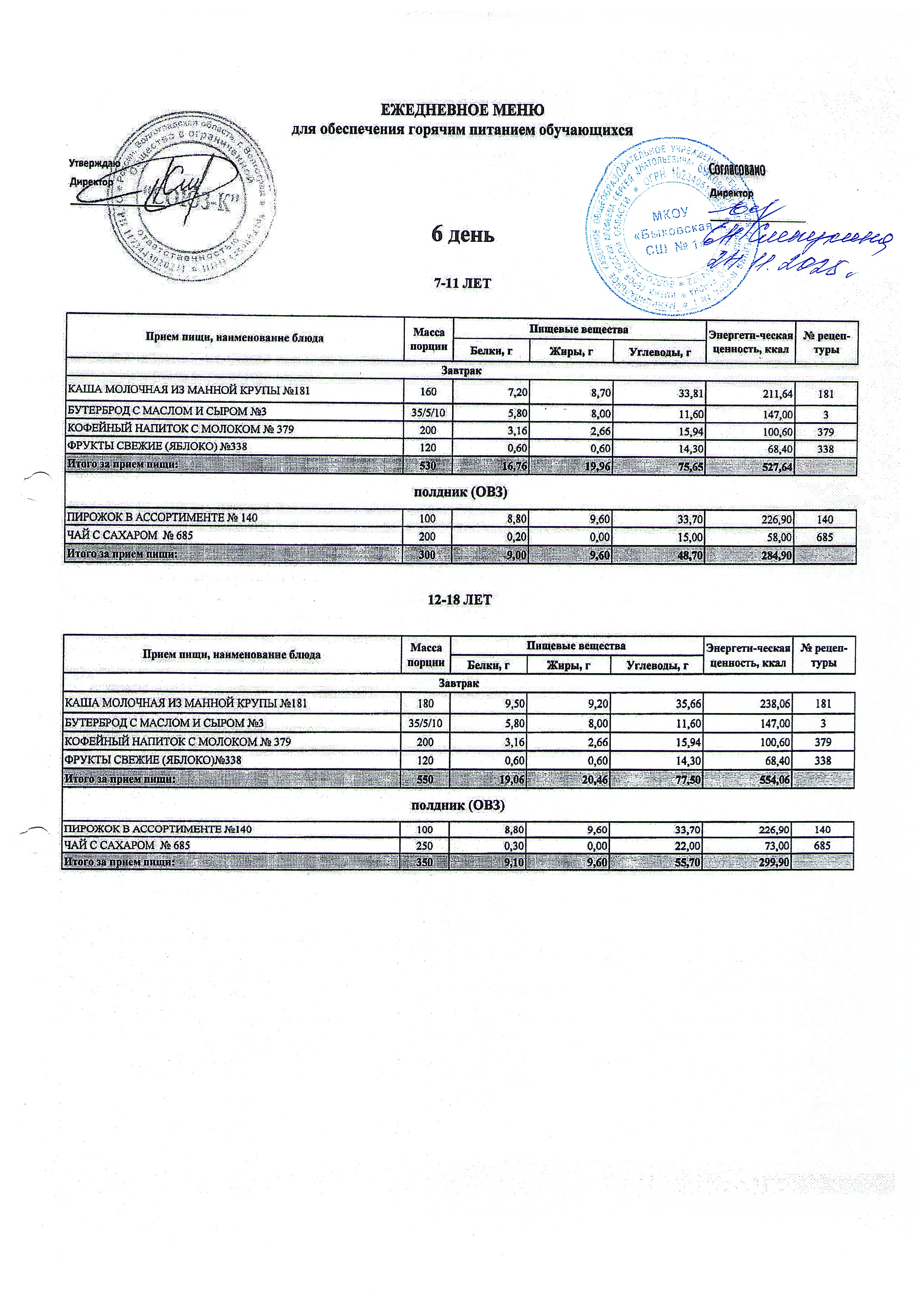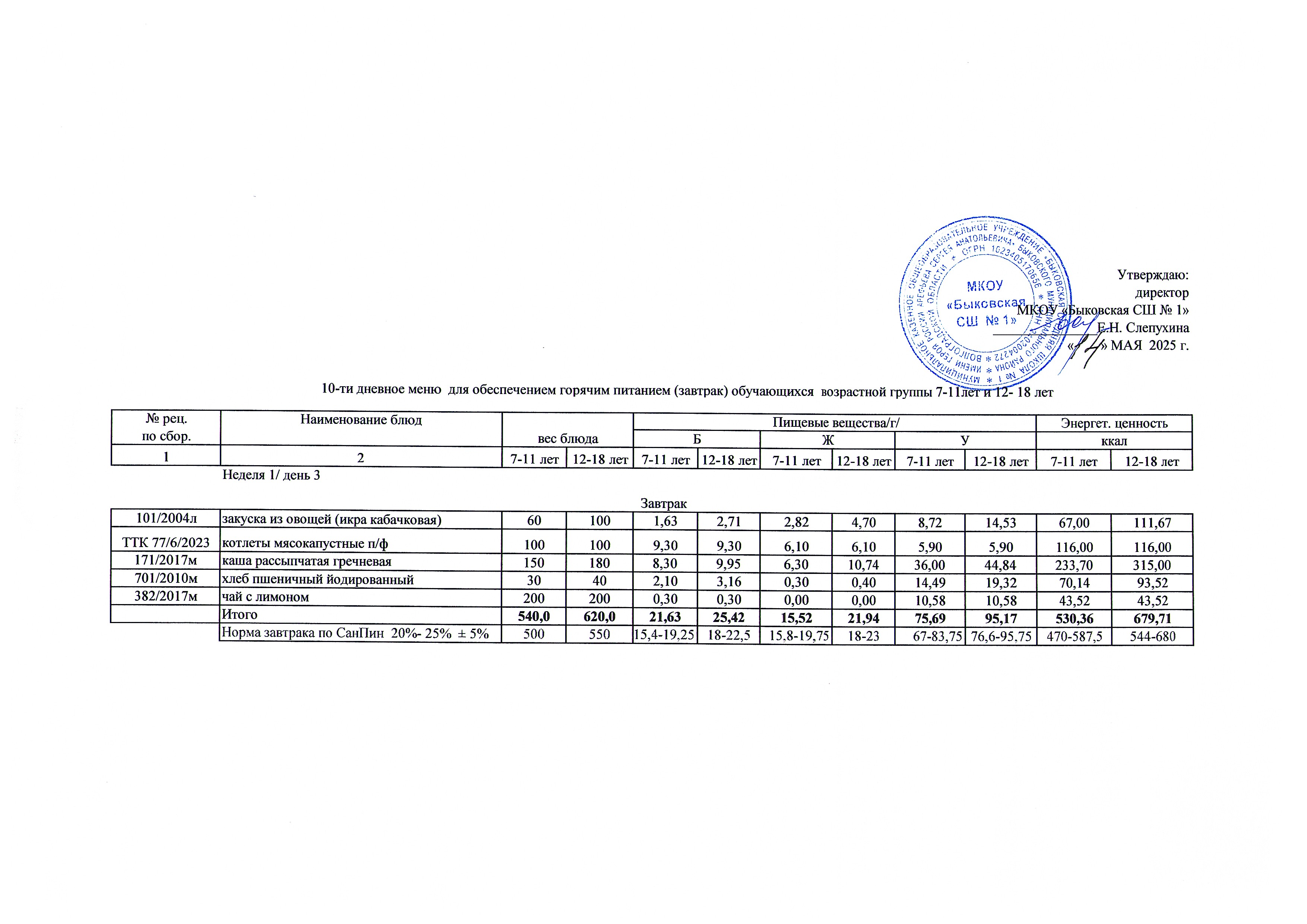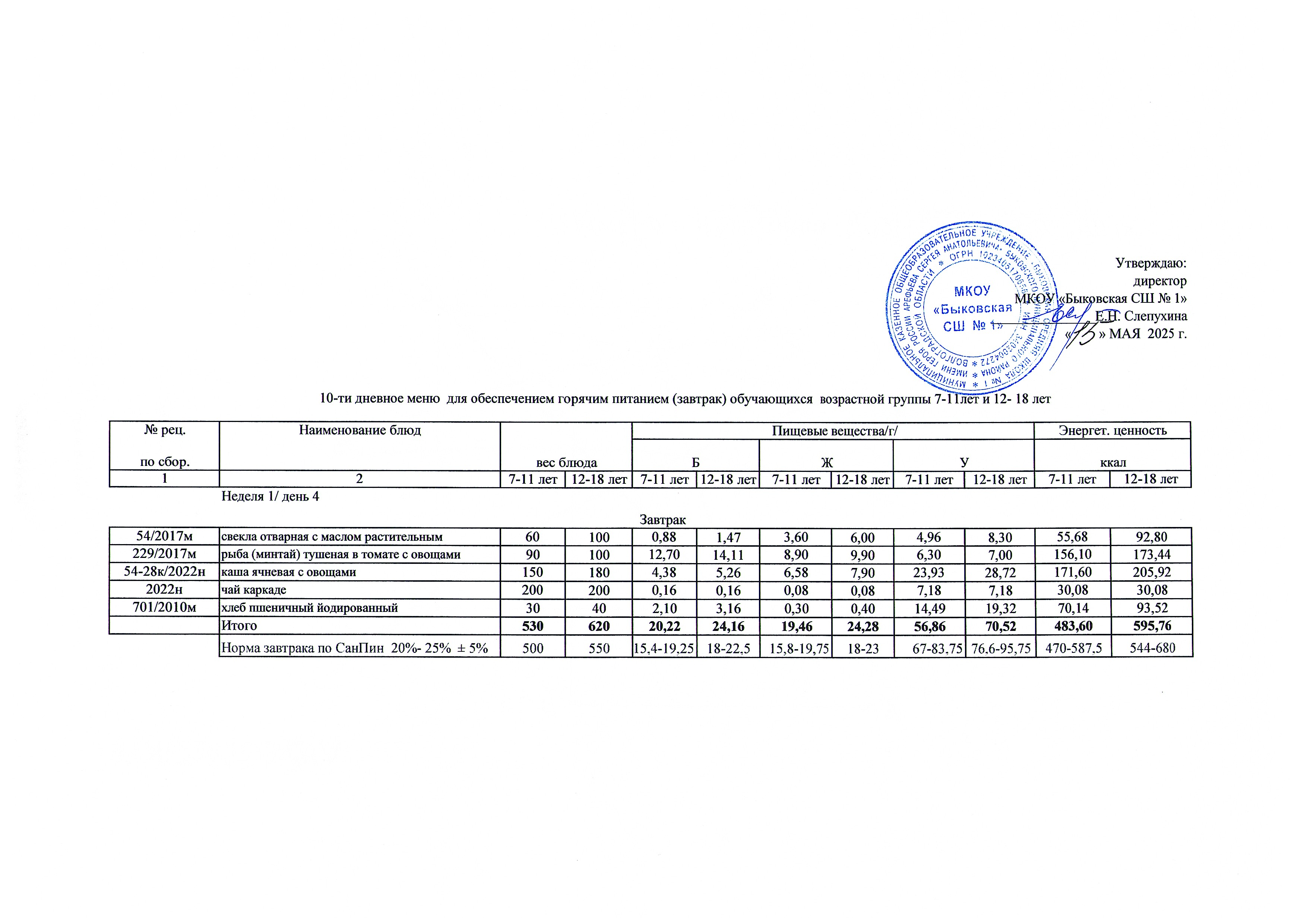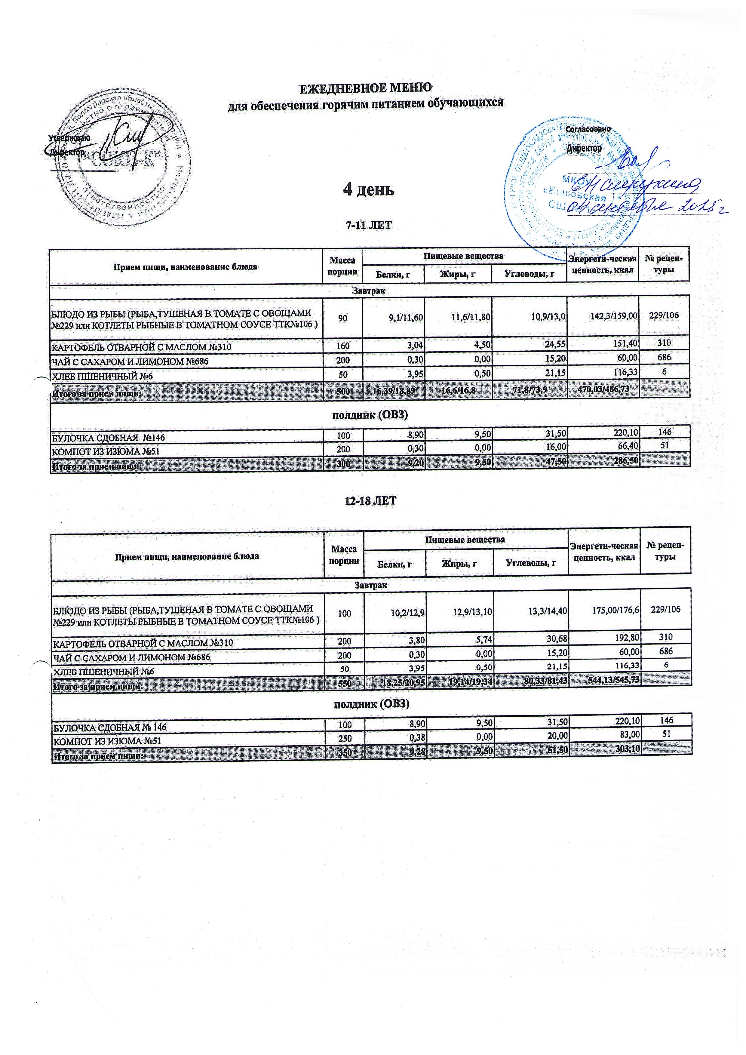 - примерное диетическое цикличное меню для 7-11 лет (1-4 классы) - отсутствует в ОО