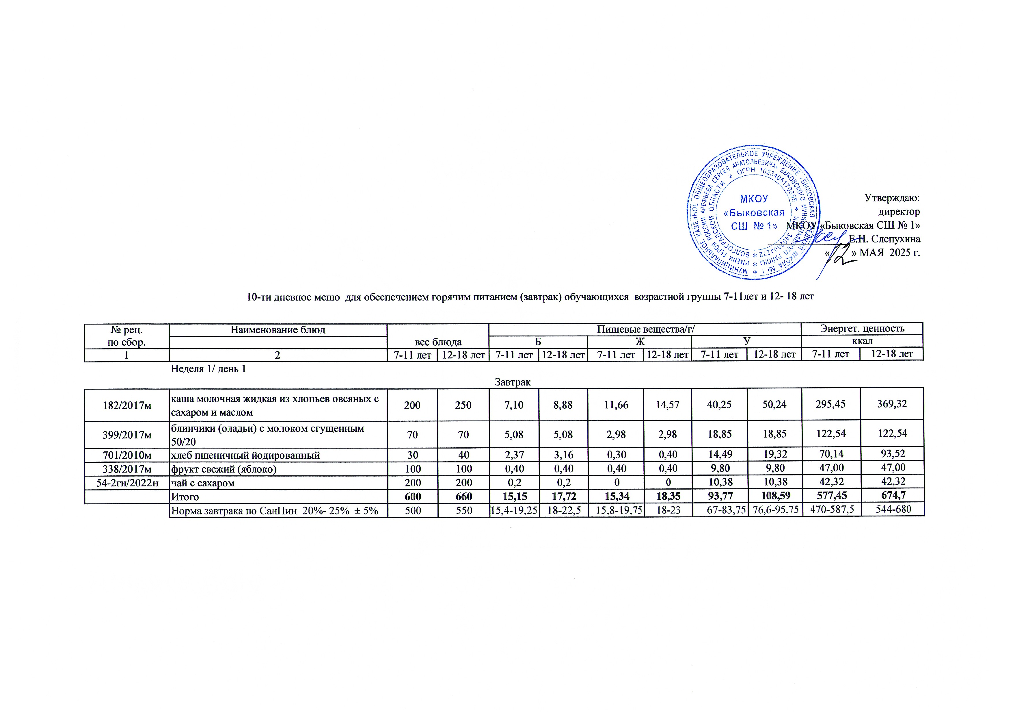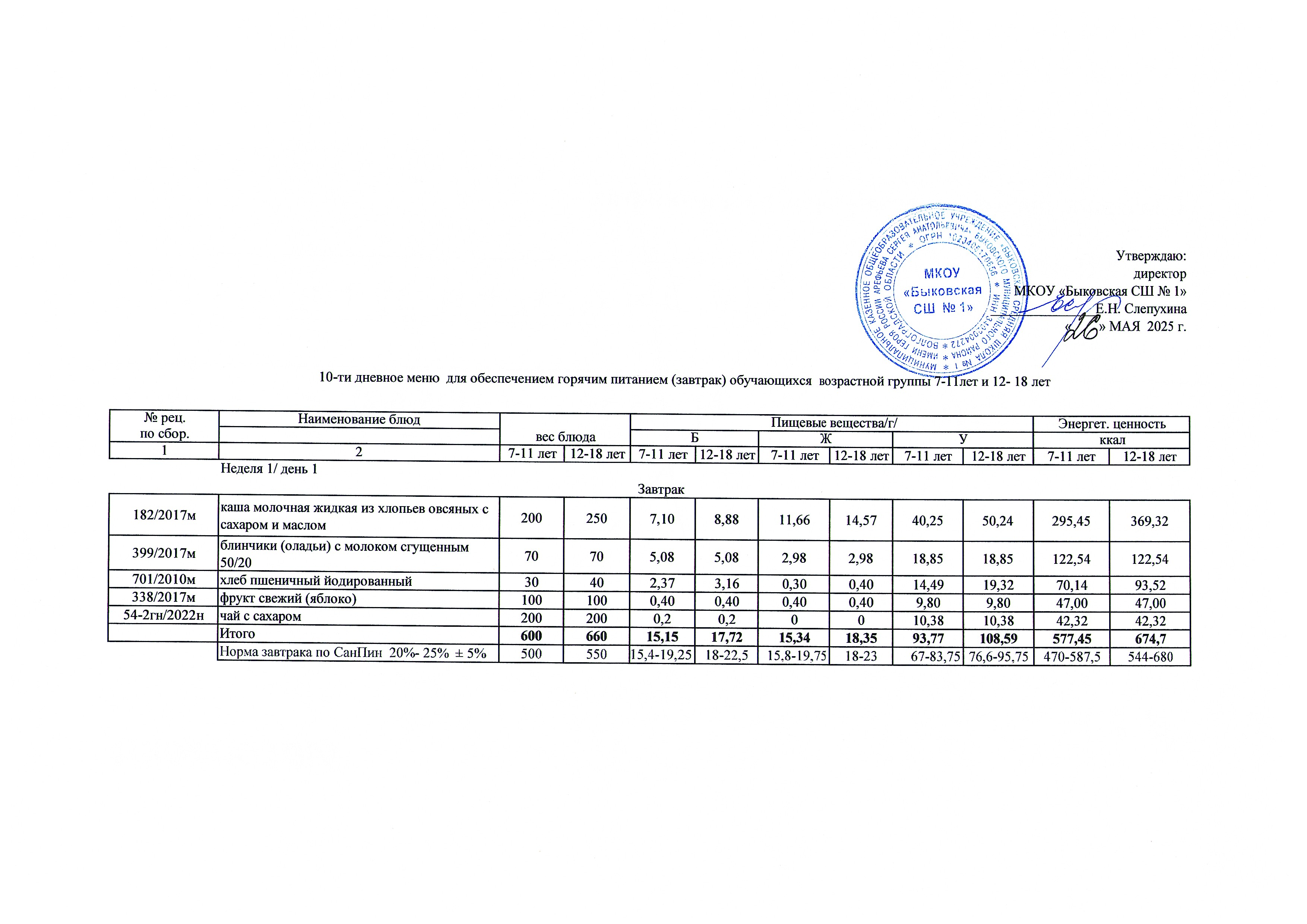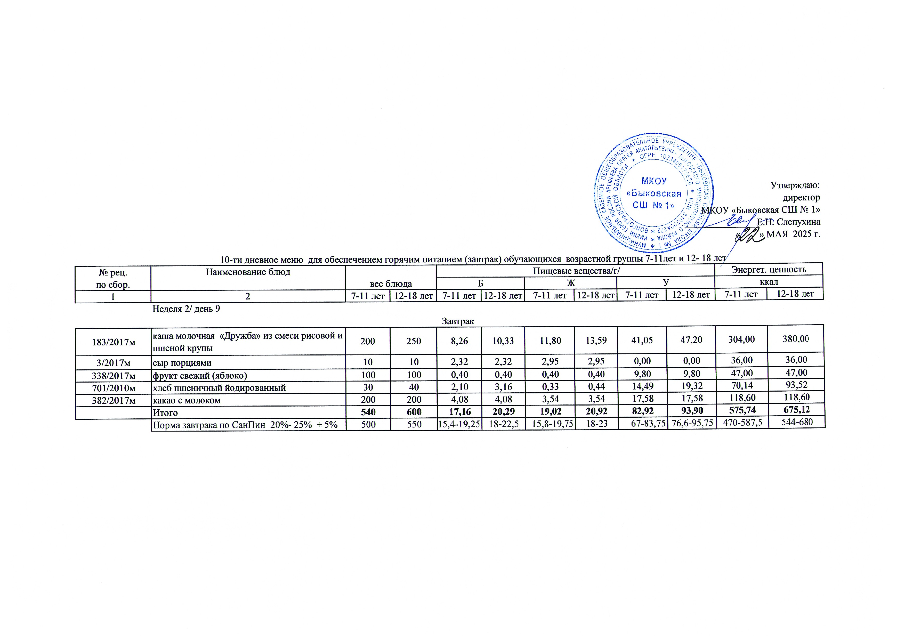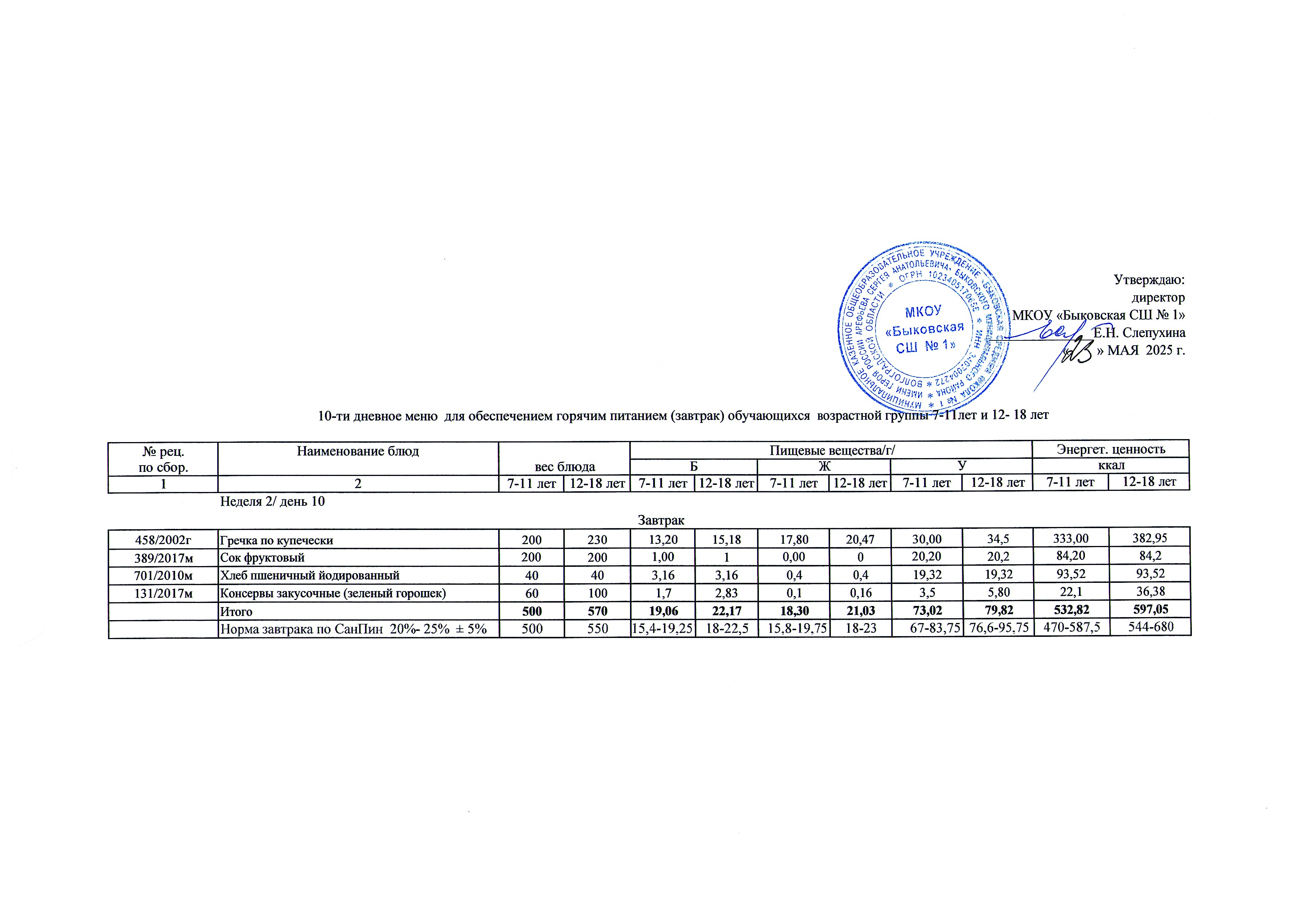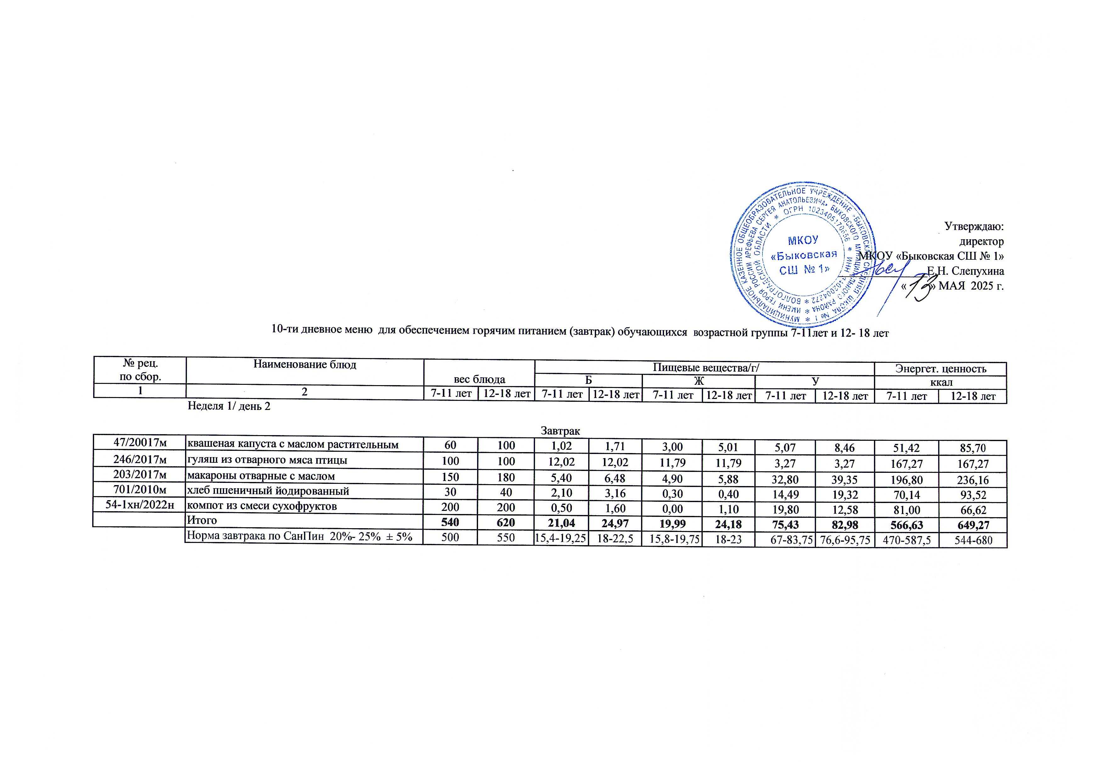 - примерное диетическое цикличное меню для 7-11 лет (1-4 классы) - отсутствует в ОО