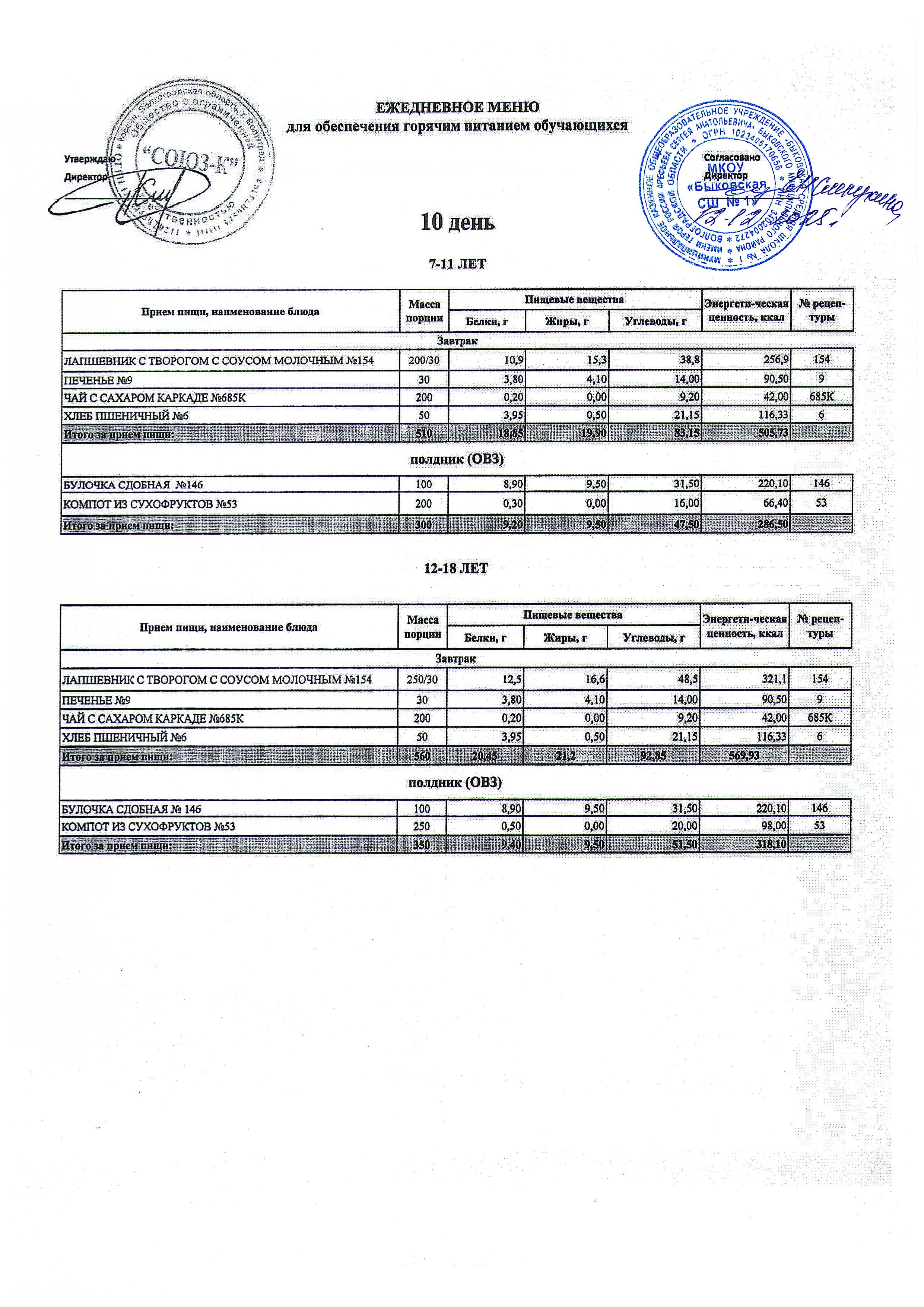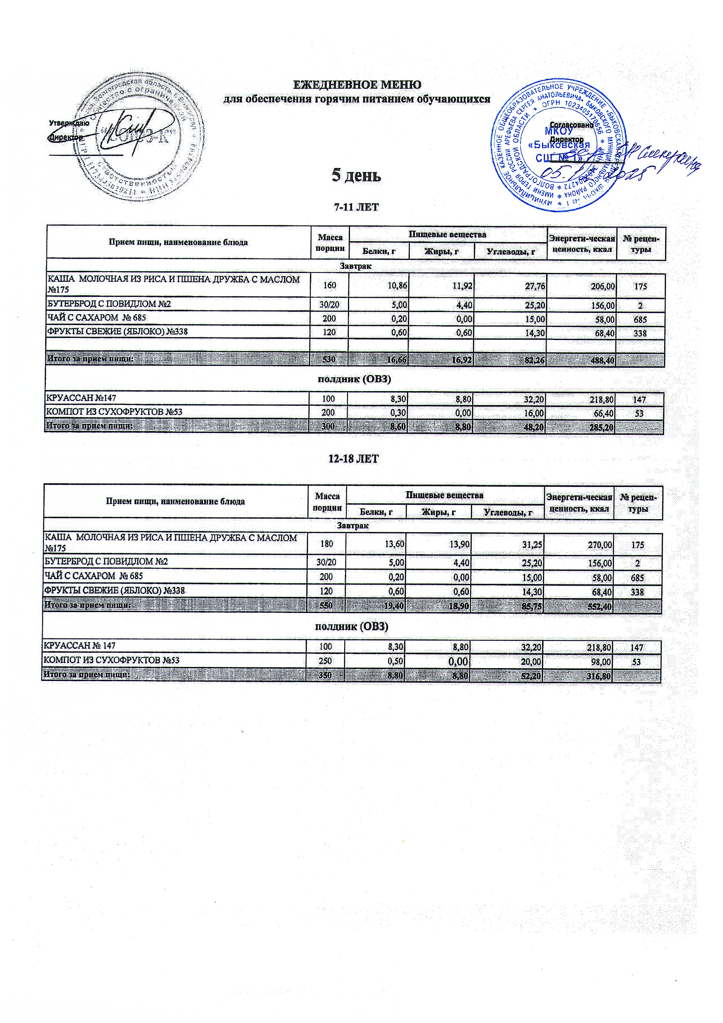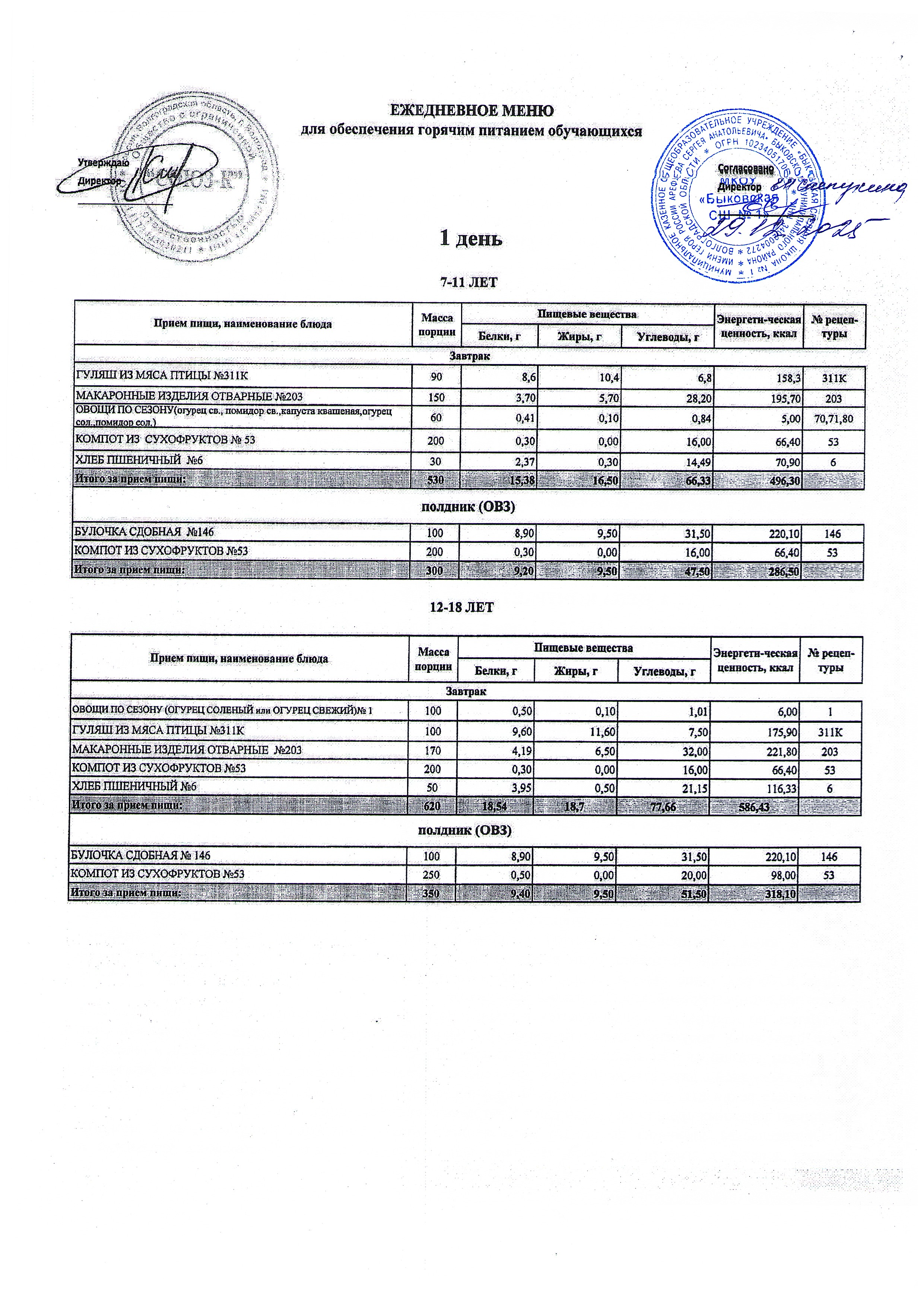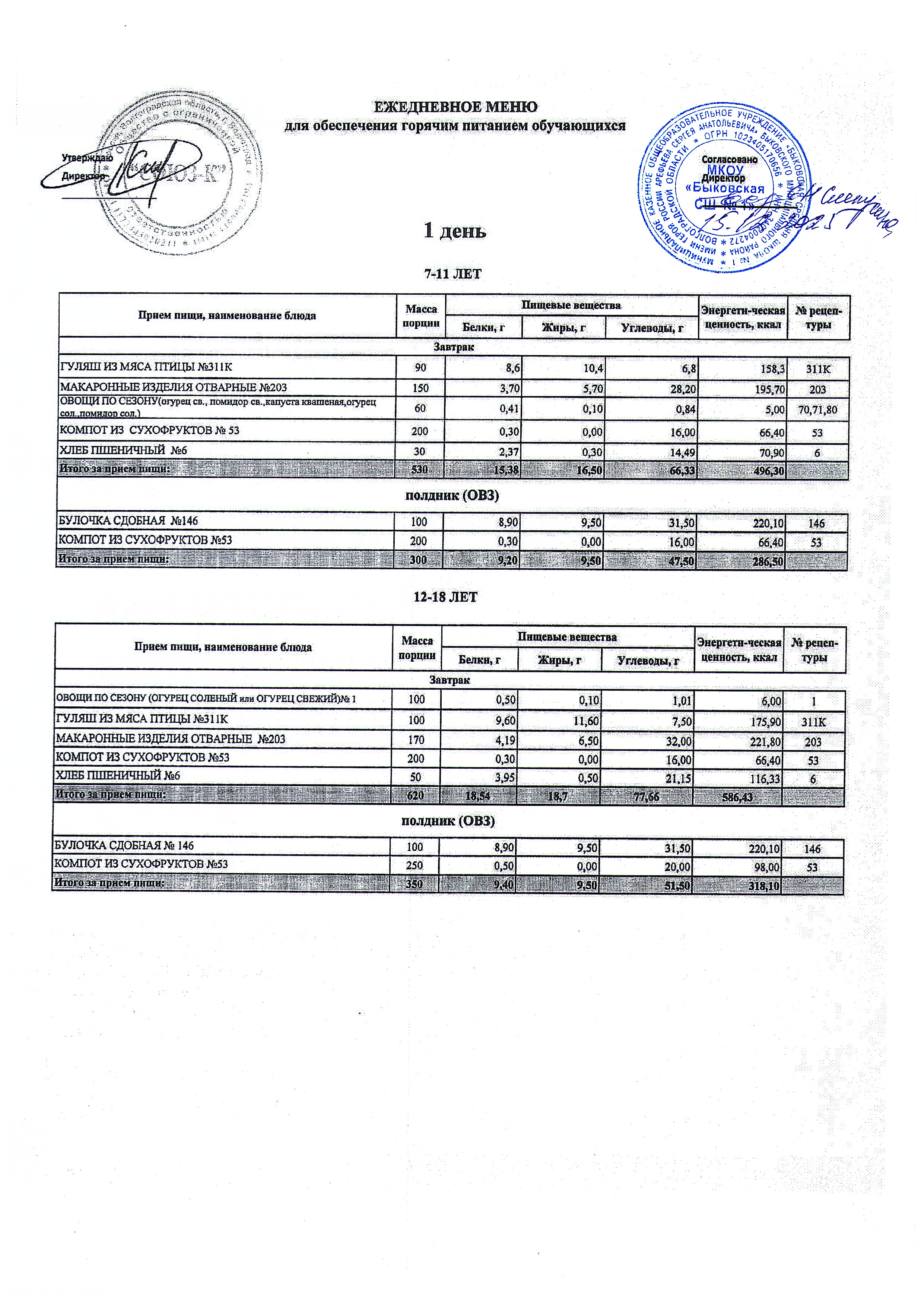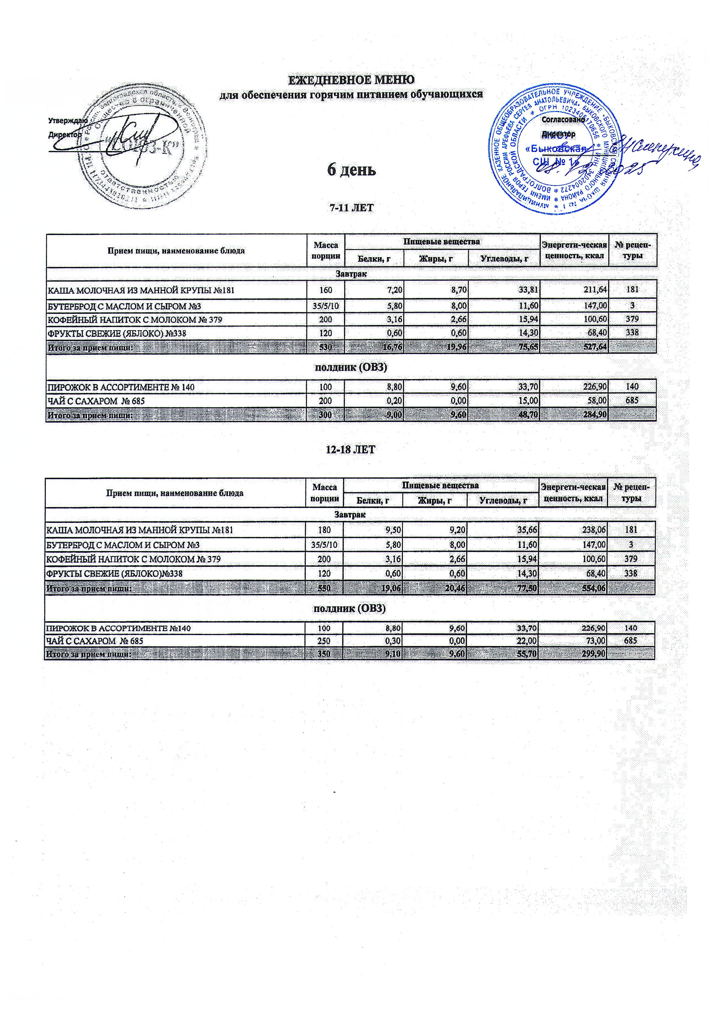 - примерное диетическое цикличное меню для 11-18 лет (5-11 классы) - отсутствует в ОО