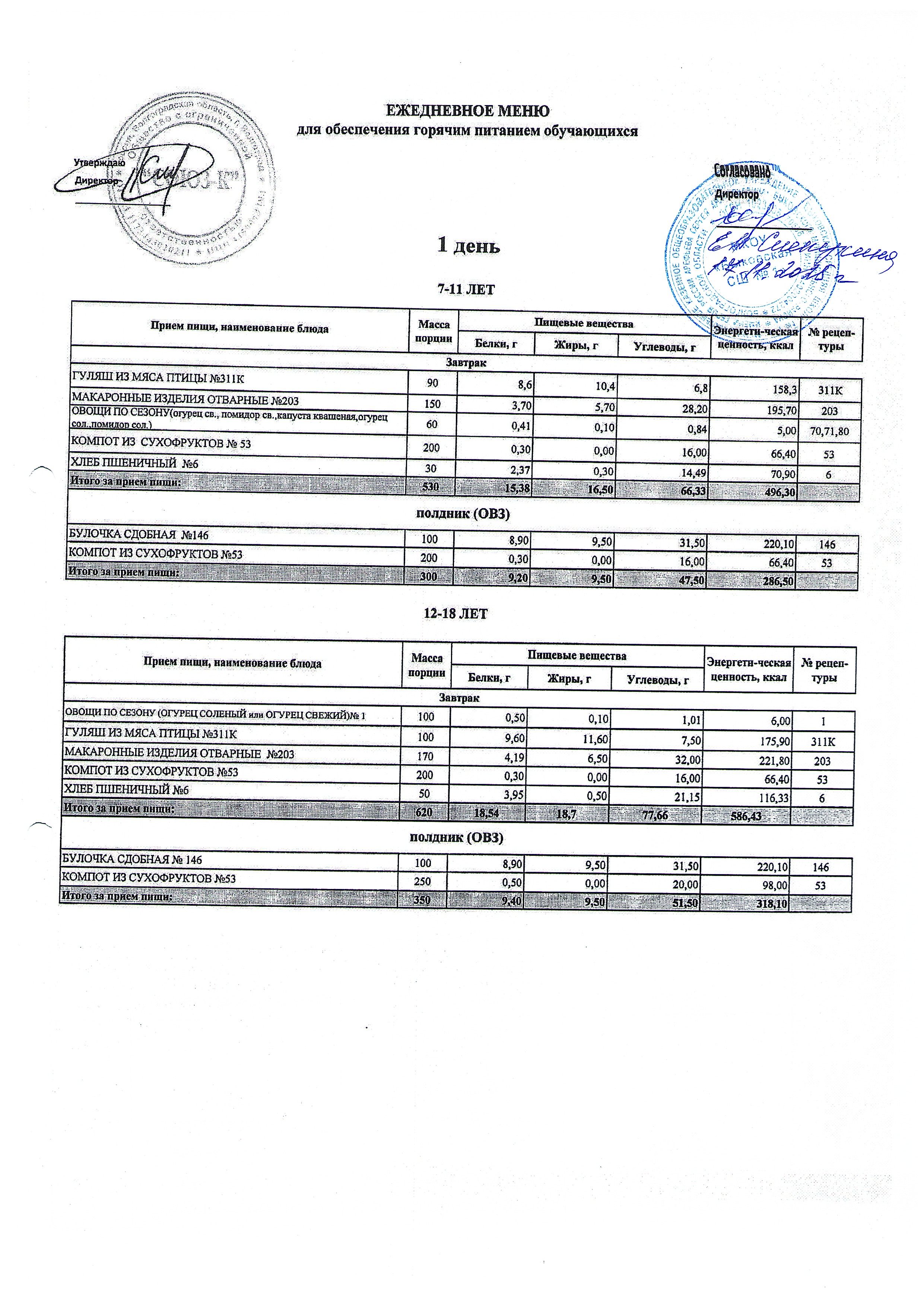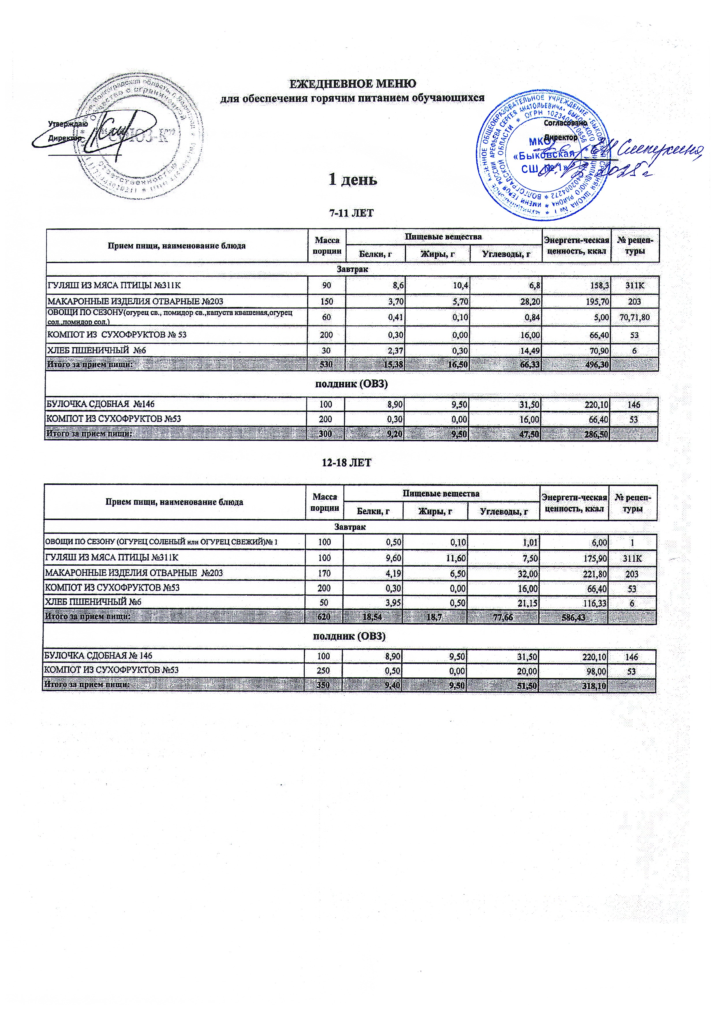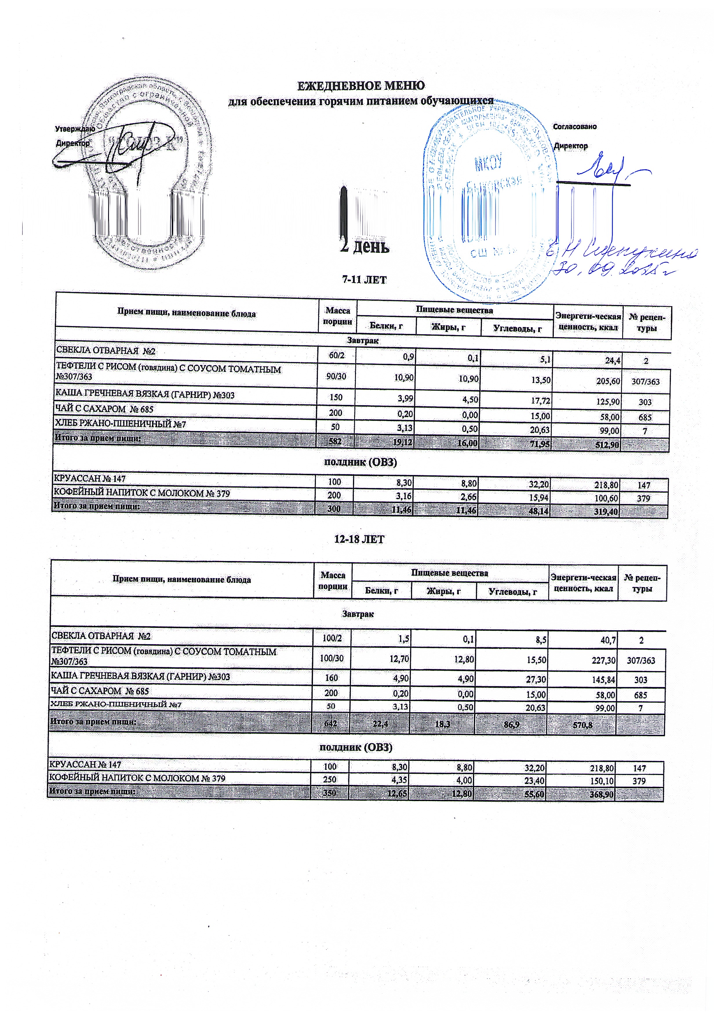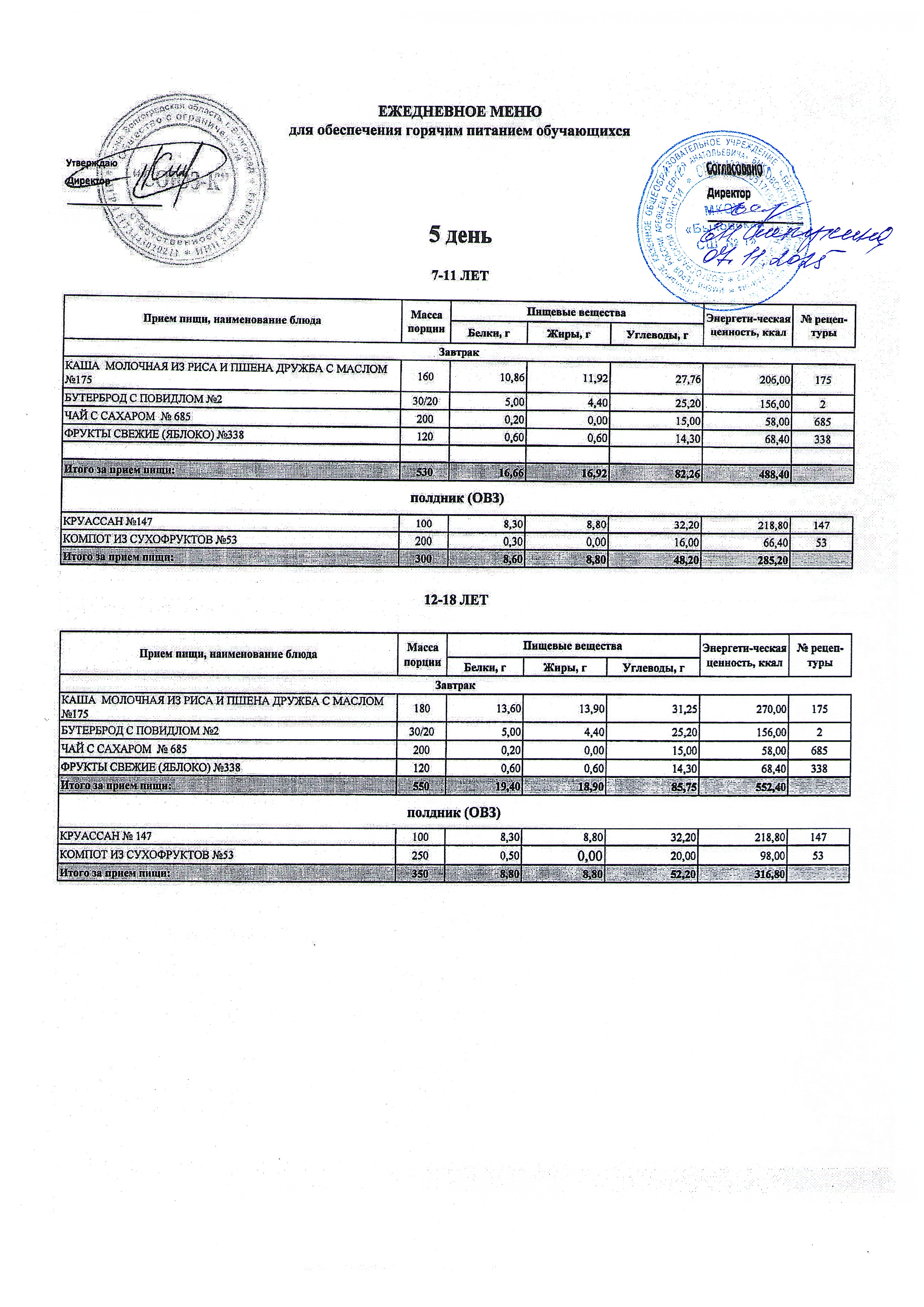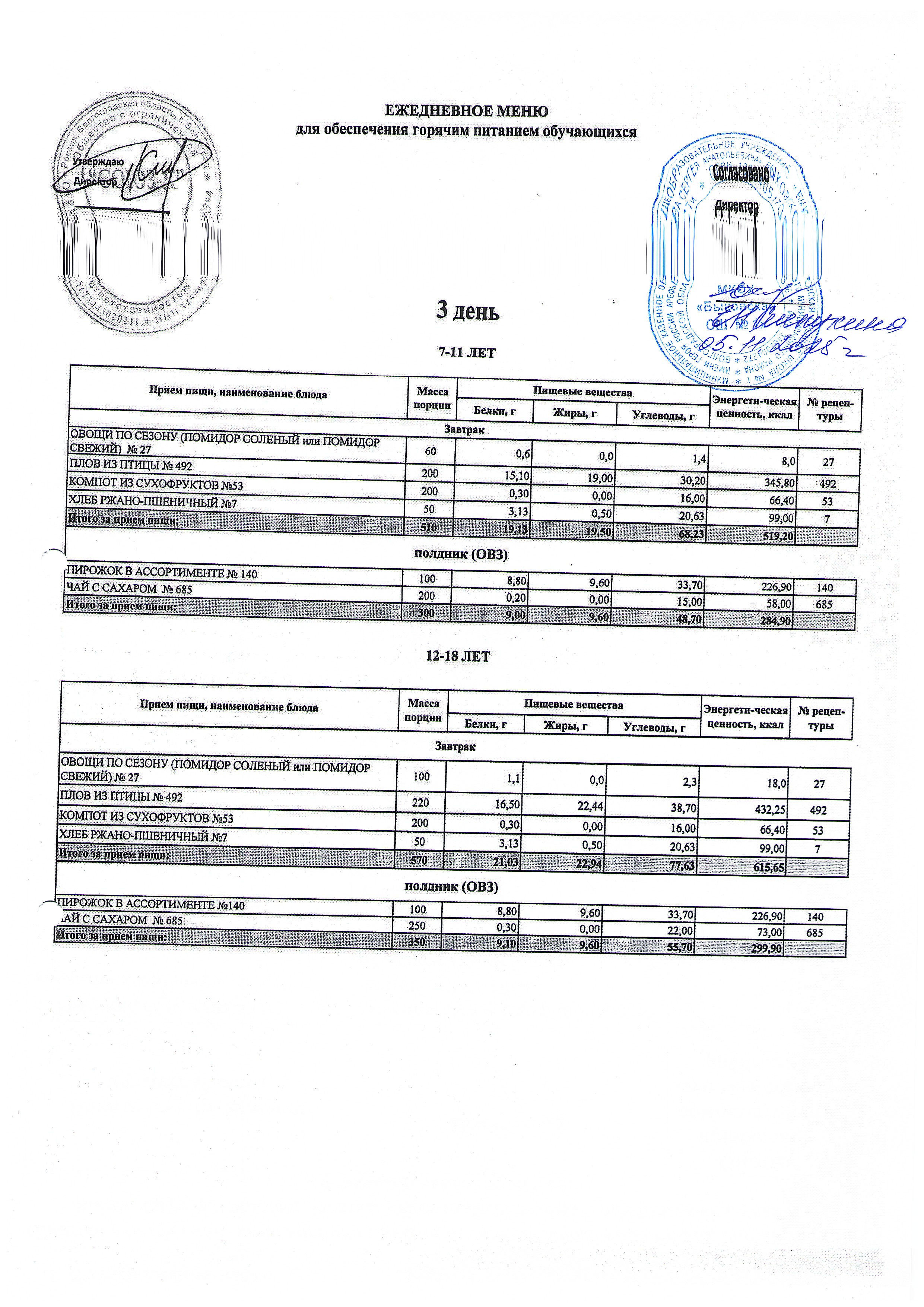 - примерное диетическое цикличное меню для 11-18 лет (5-11 классы) - отсутствует в ОО