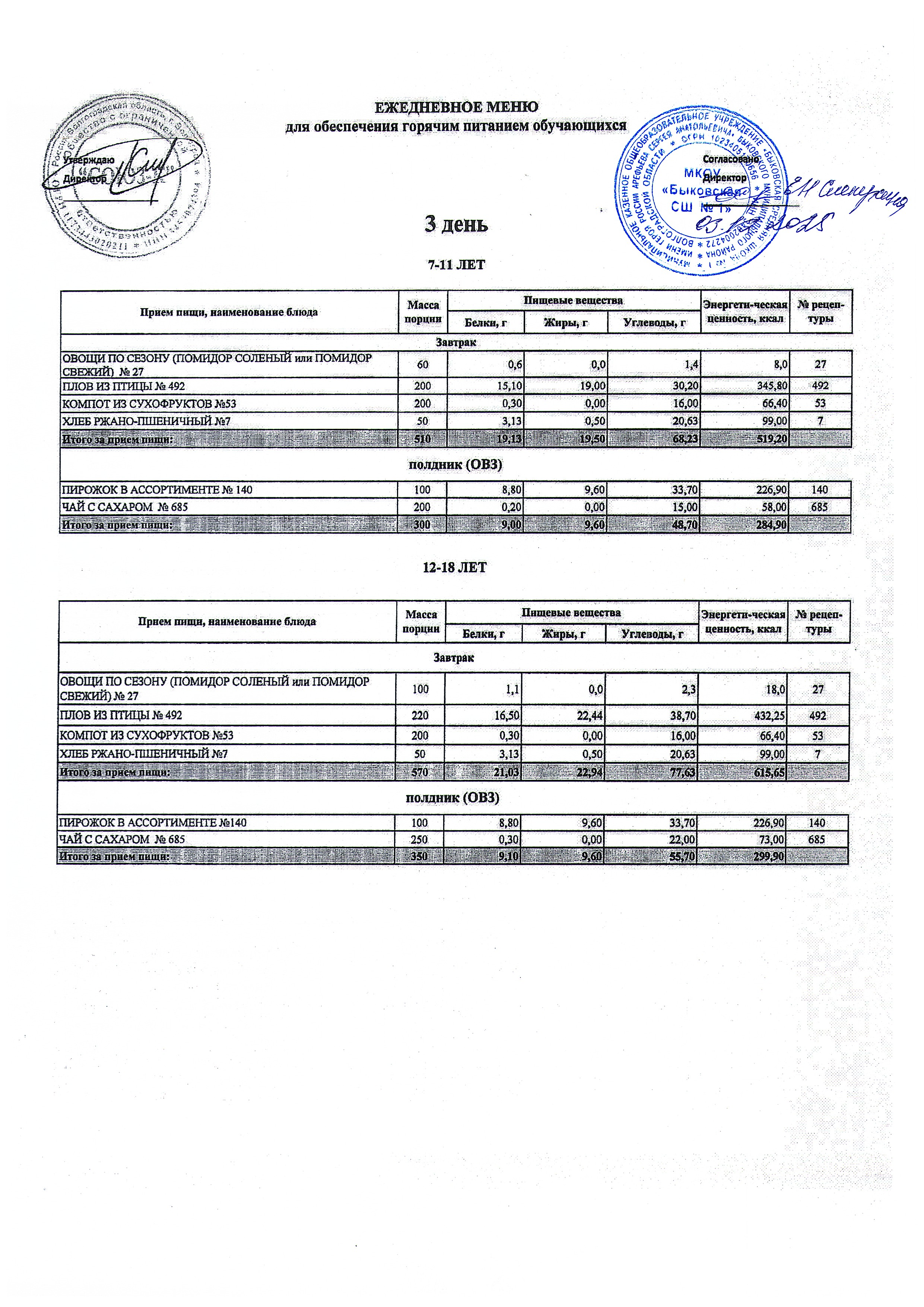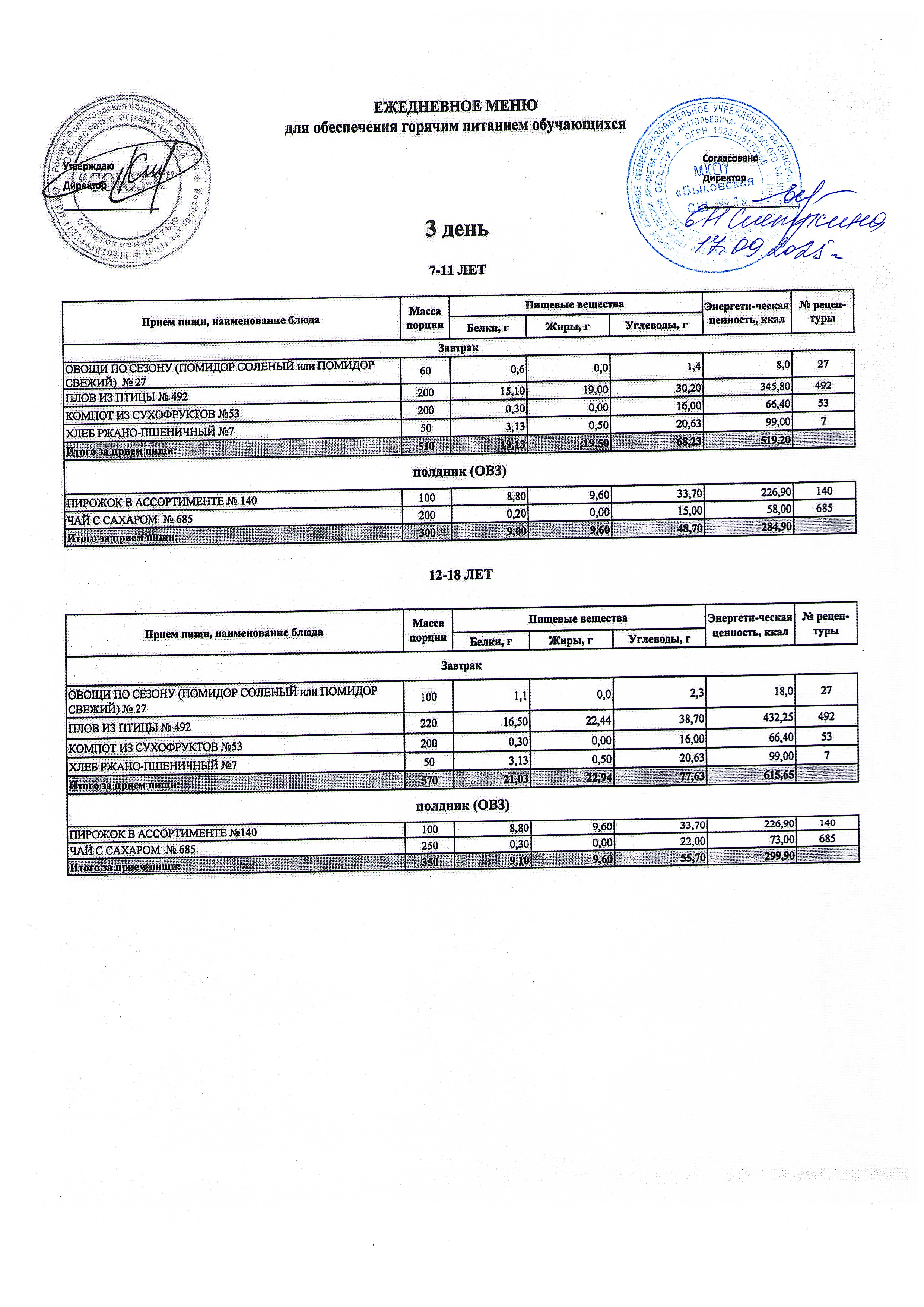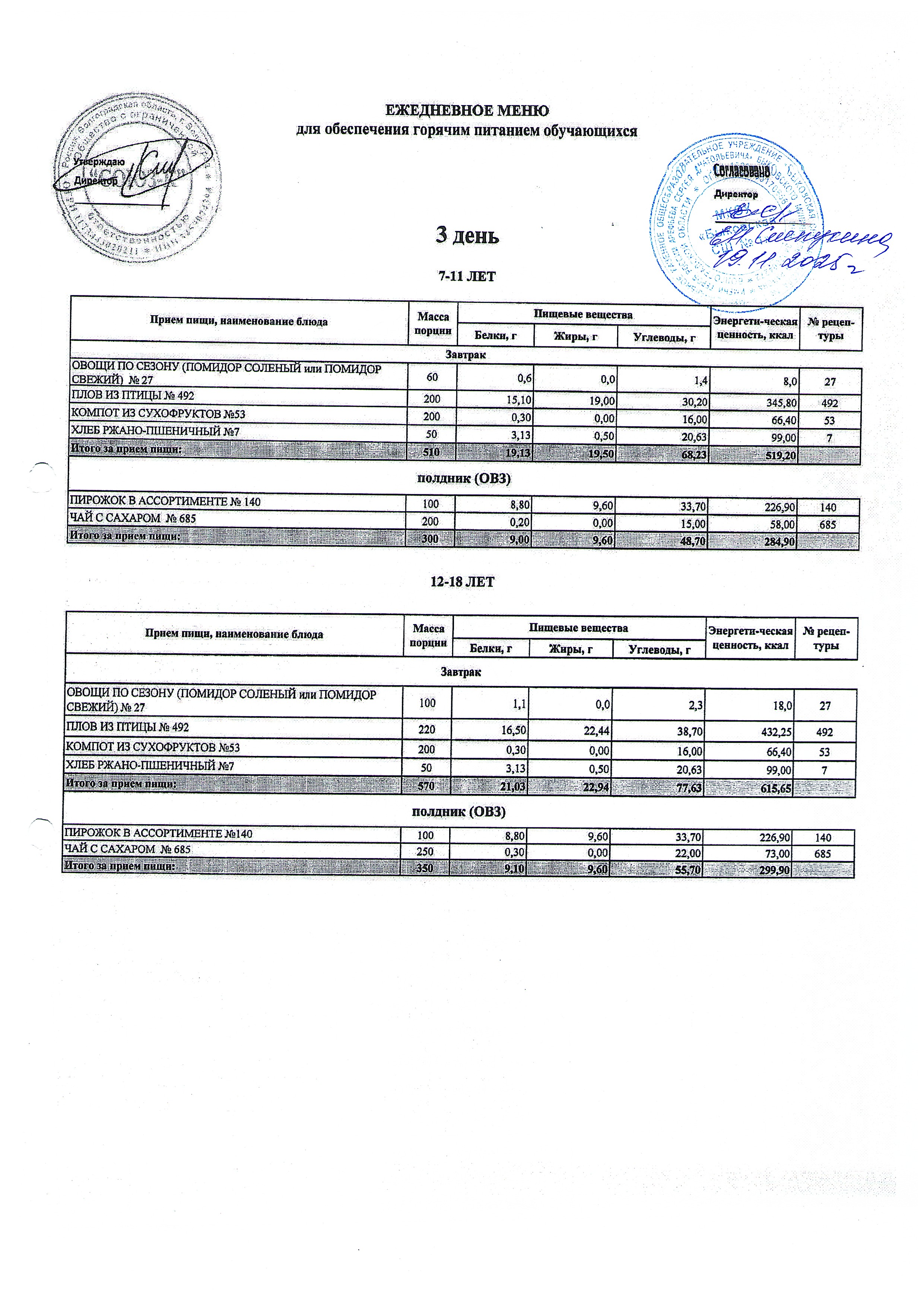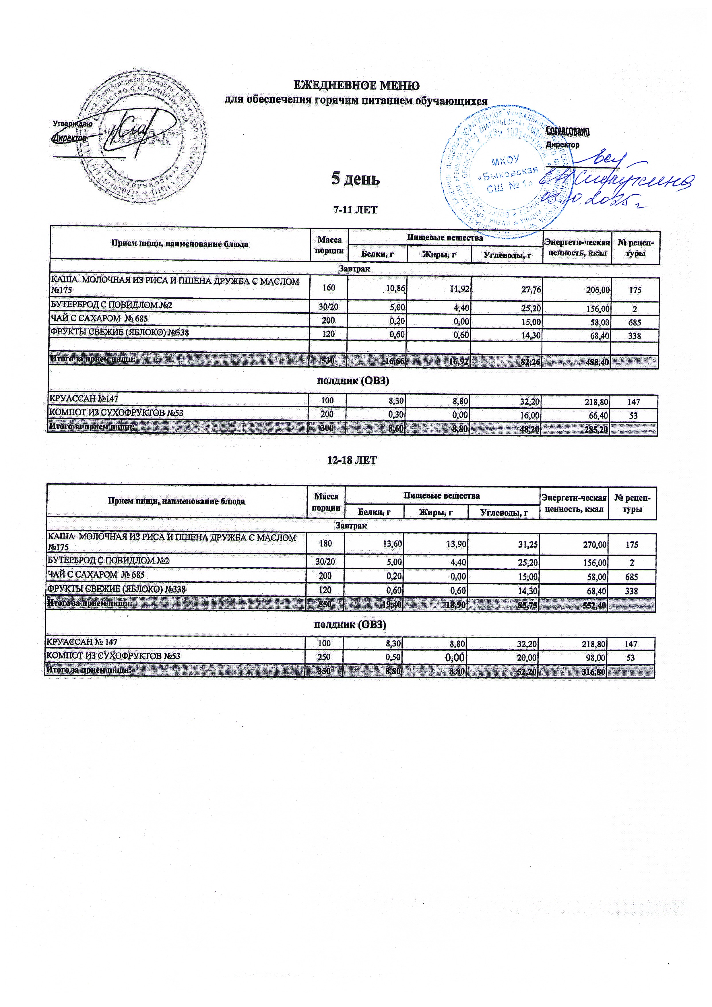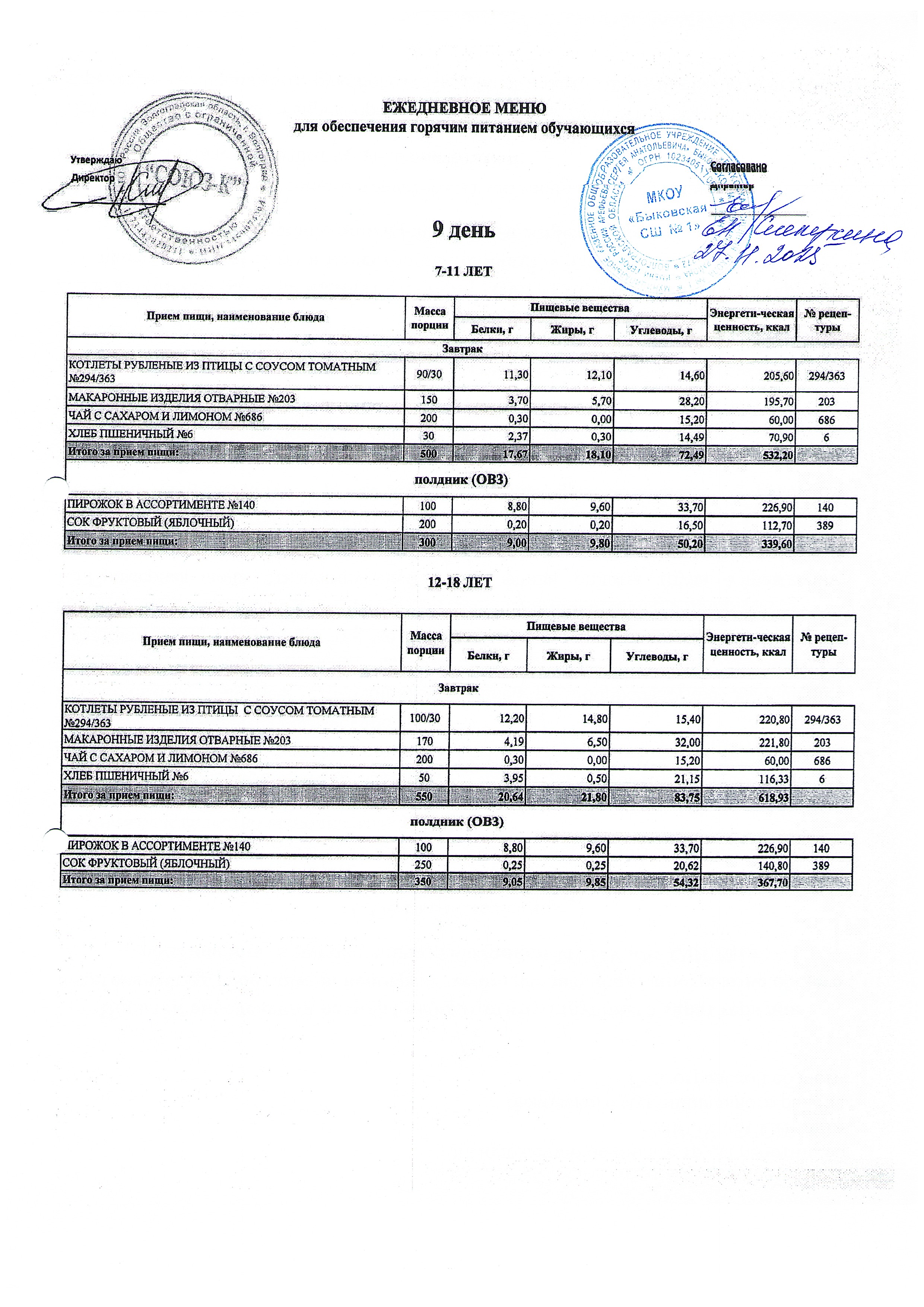 - примерное диетическое цикличное меню для 11-18 лет (5-11 классы) - отсутствует в ОО