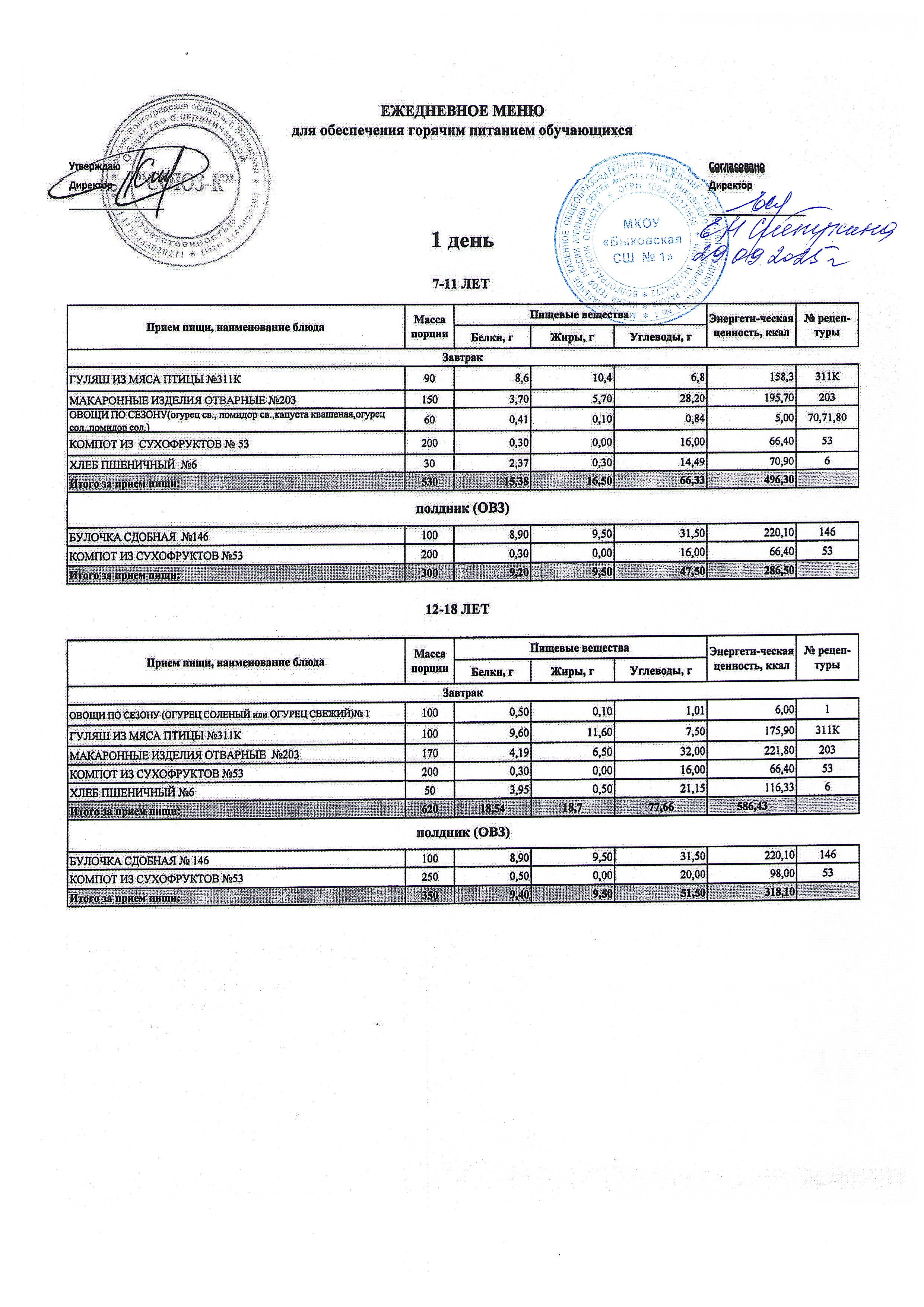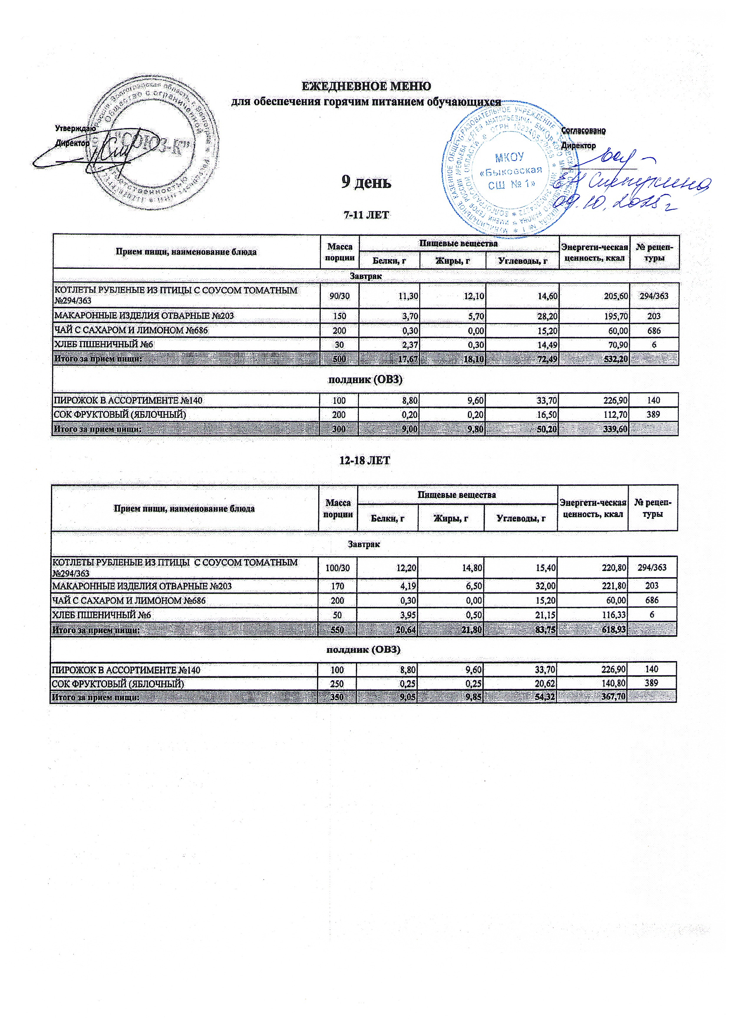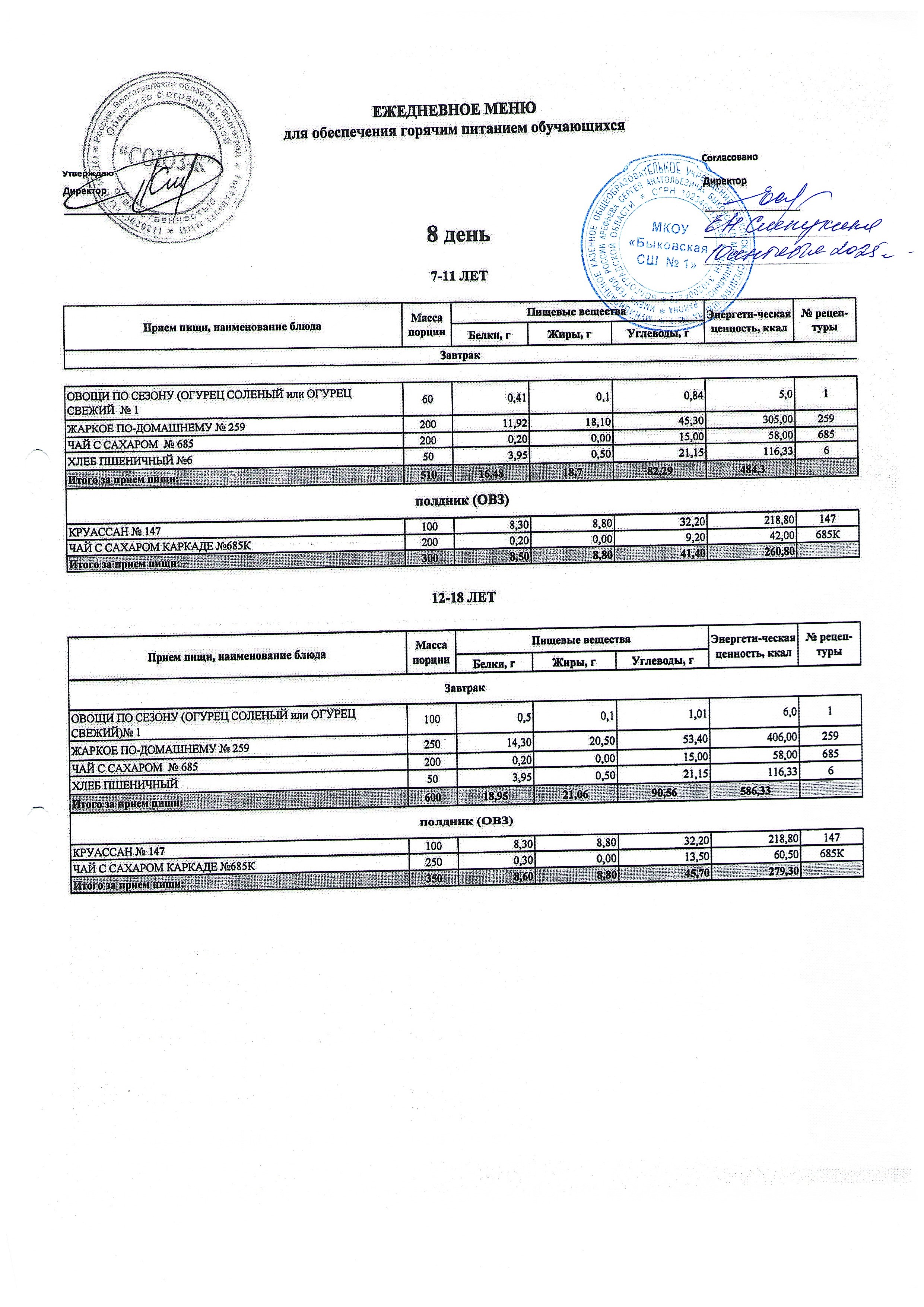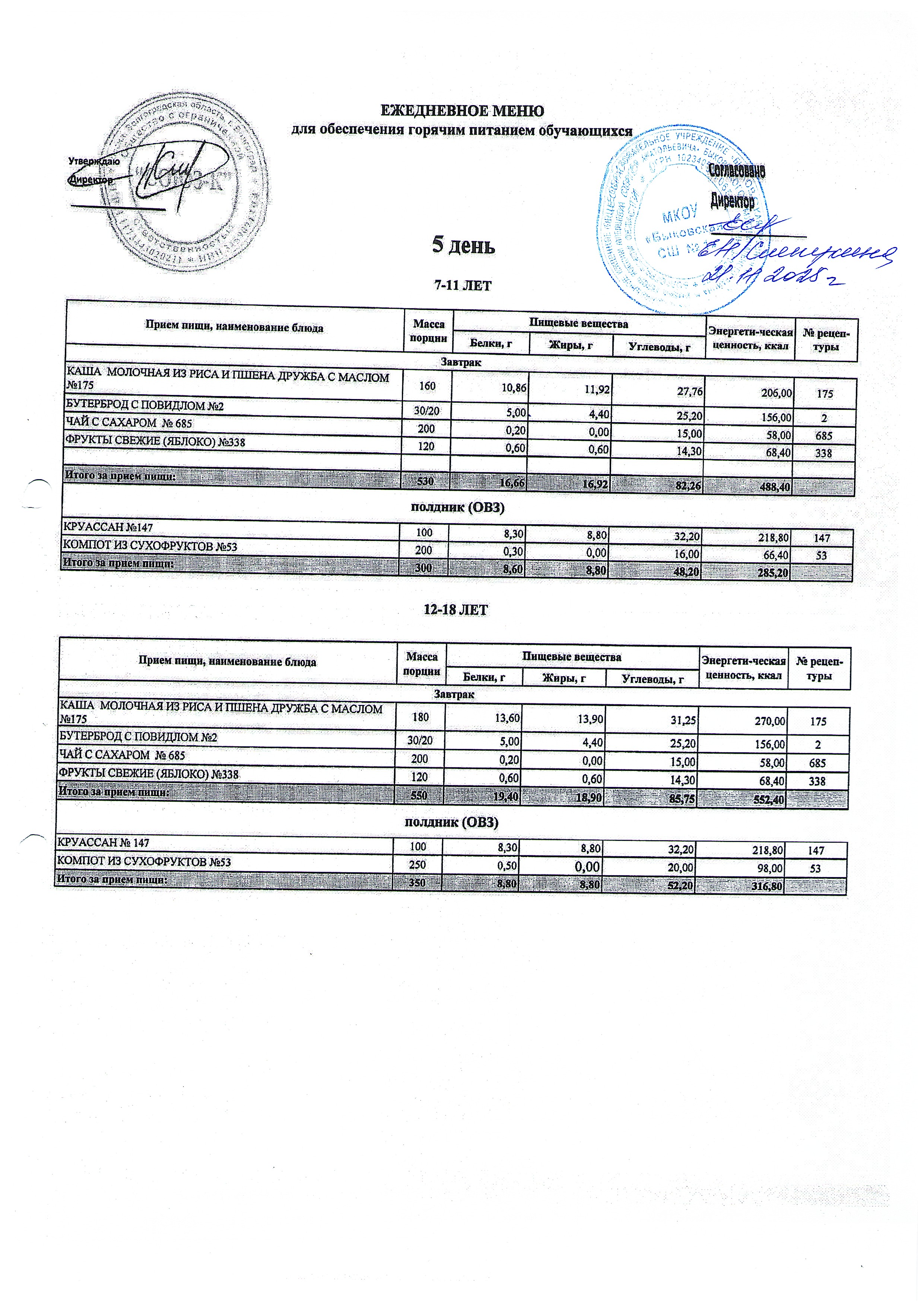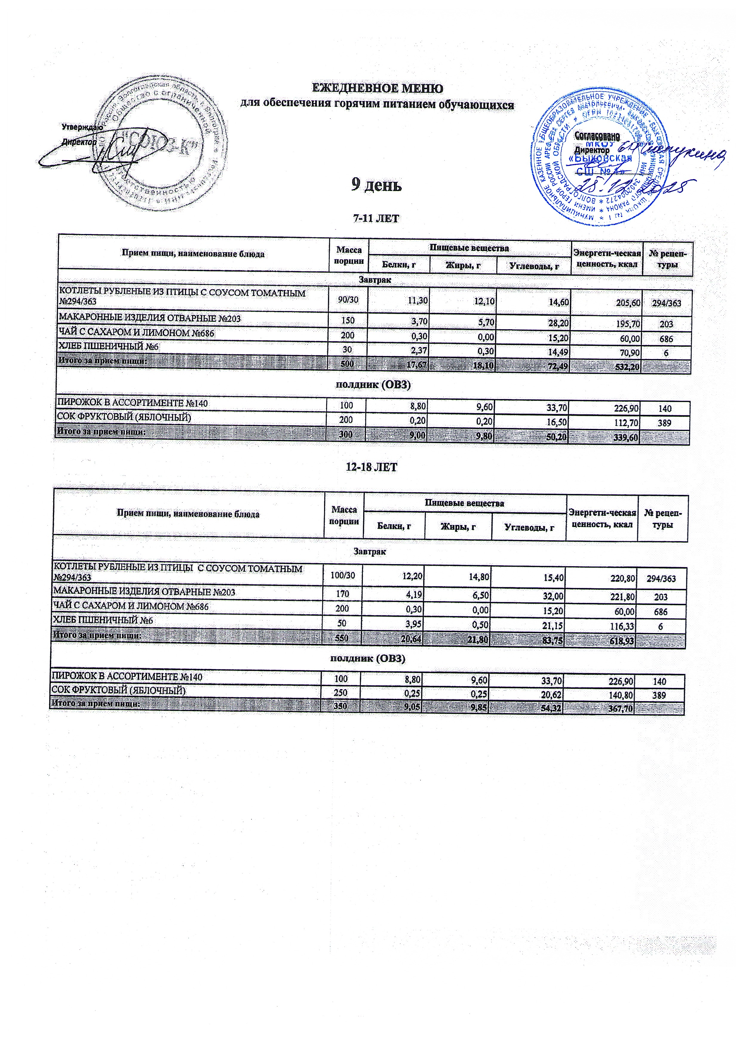- примерное диетическое цикличное меню для 11-18 лет (5-11 классы) - отсутствует в ОО