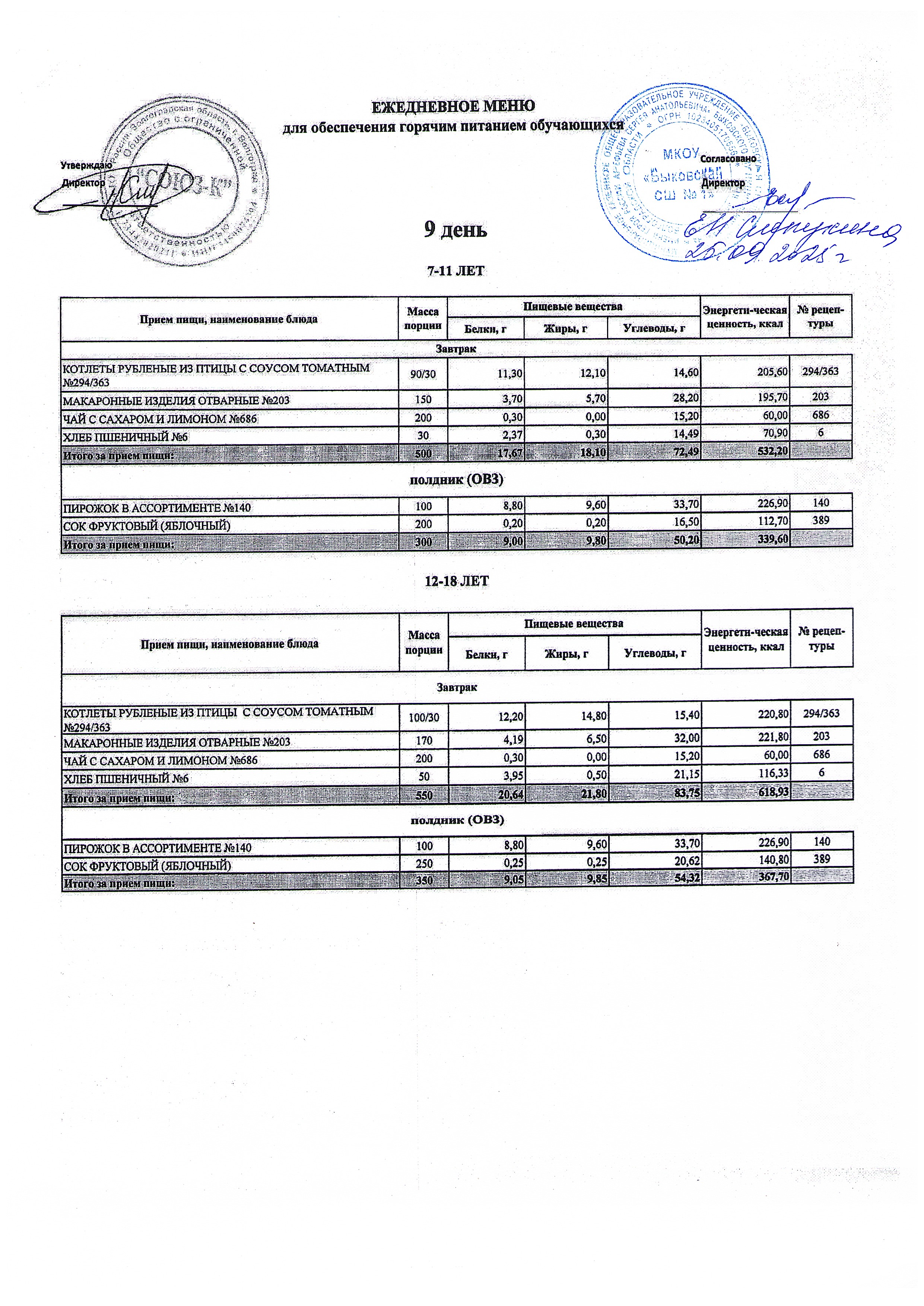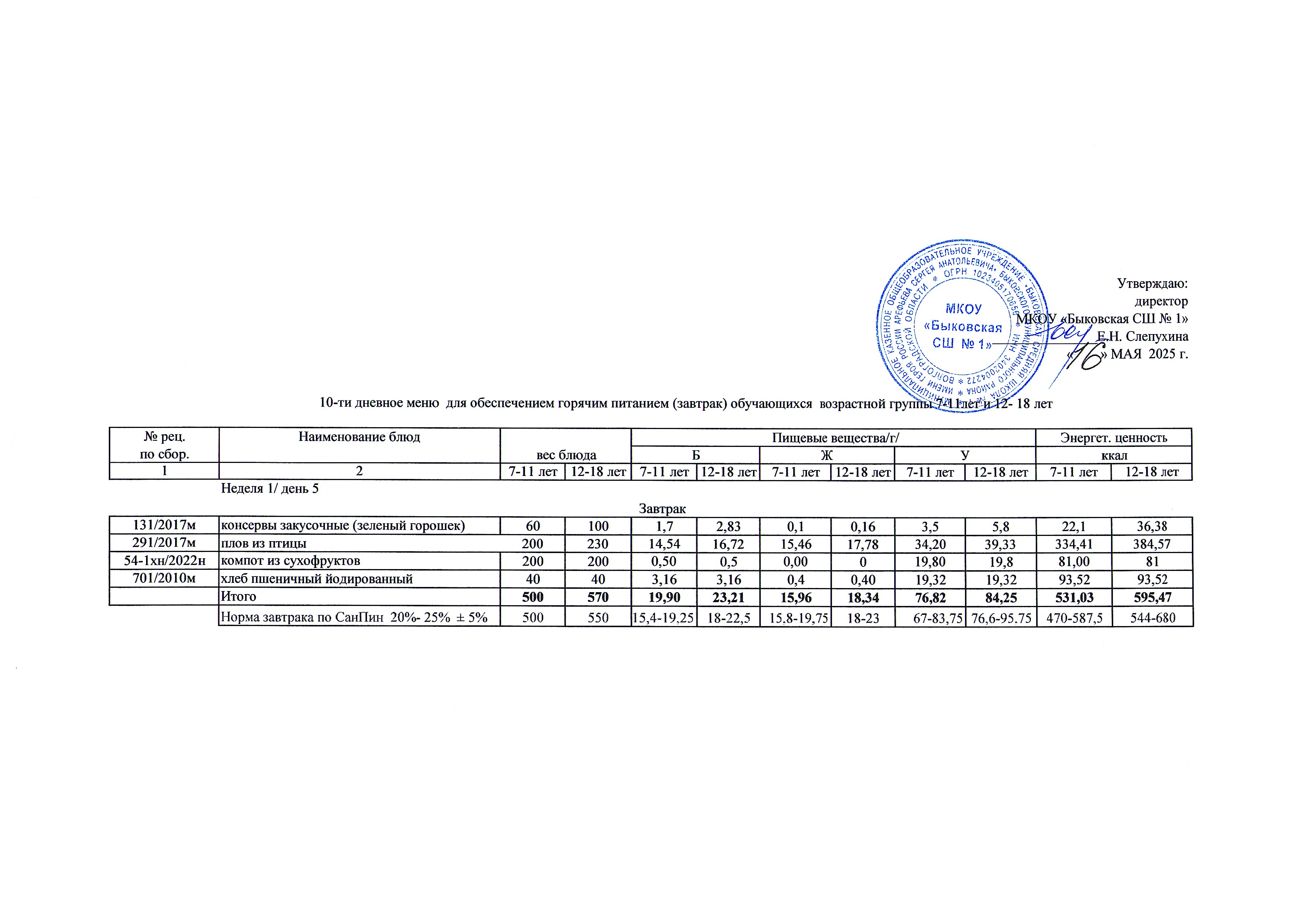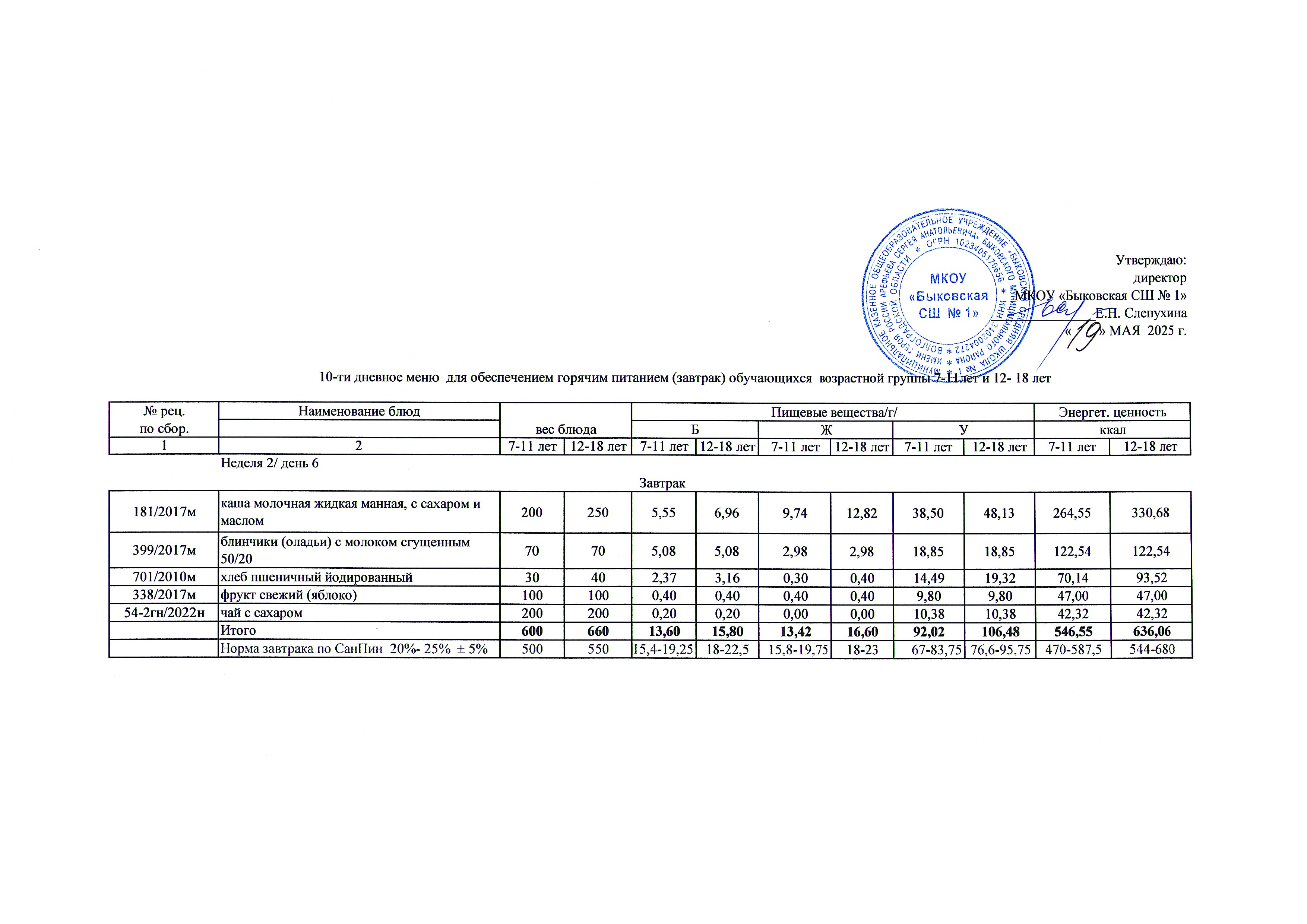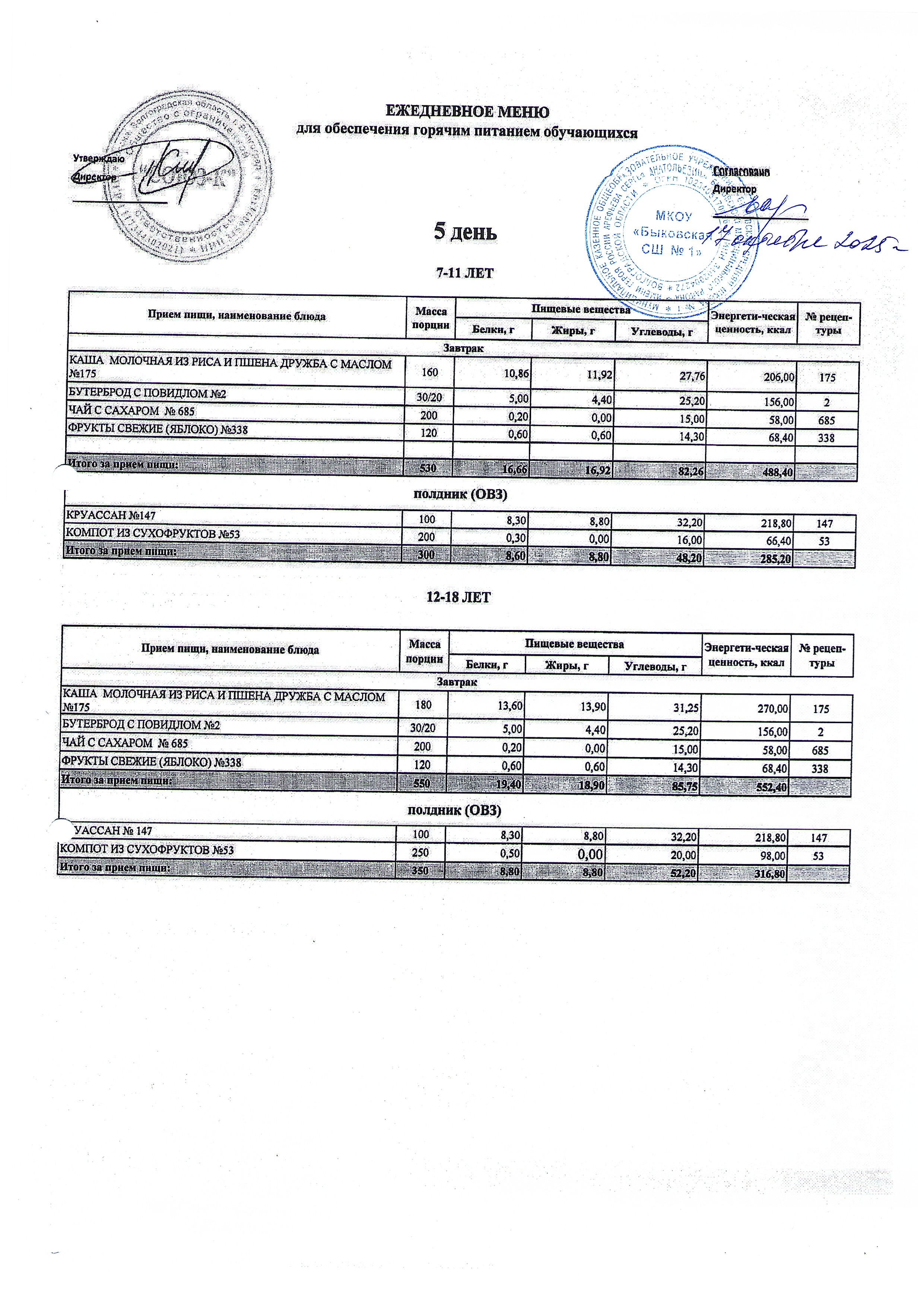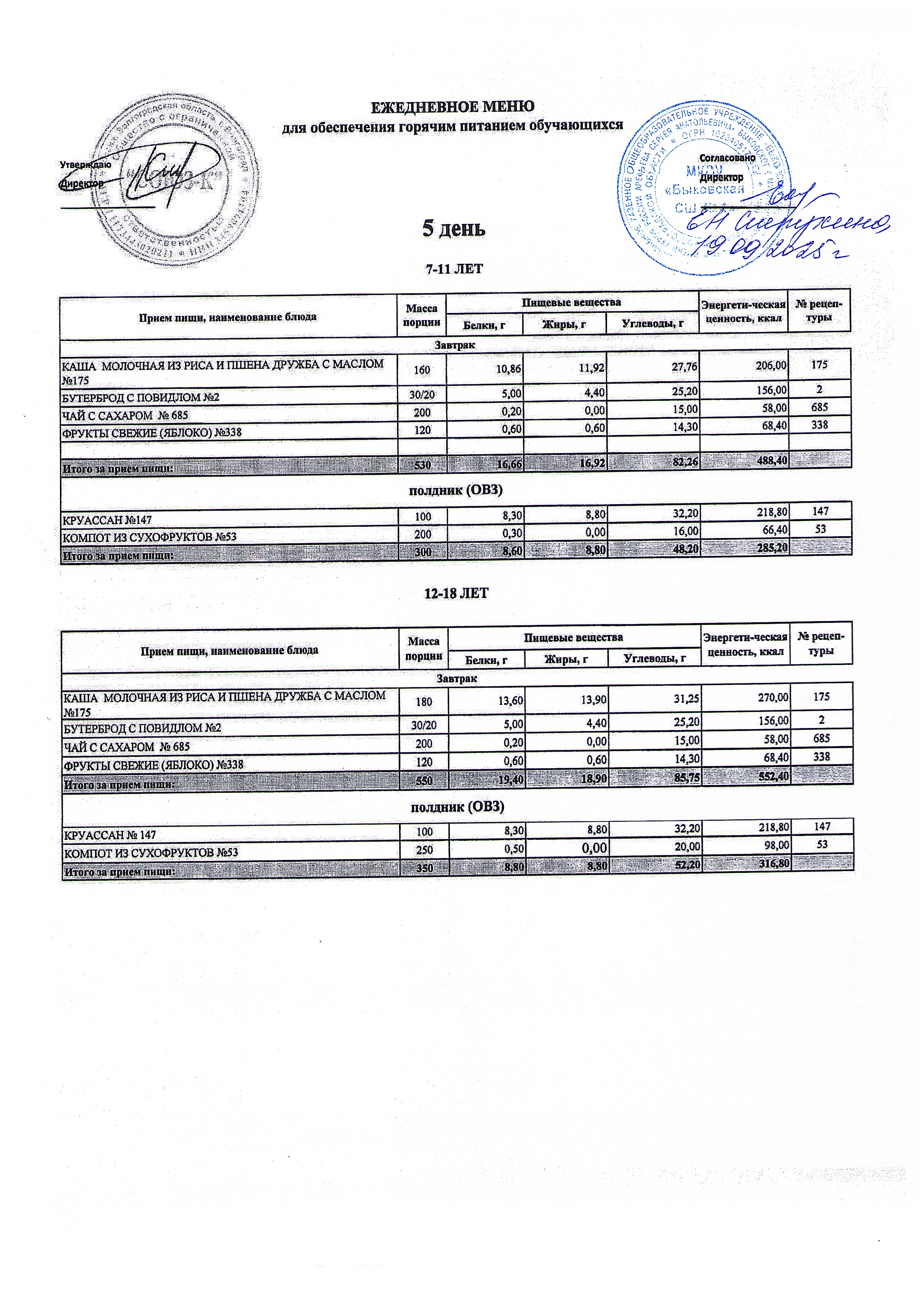 - примерное диетическое цикличное меню для 11-18 лет (5-11 классы) - отсутствует в ОО