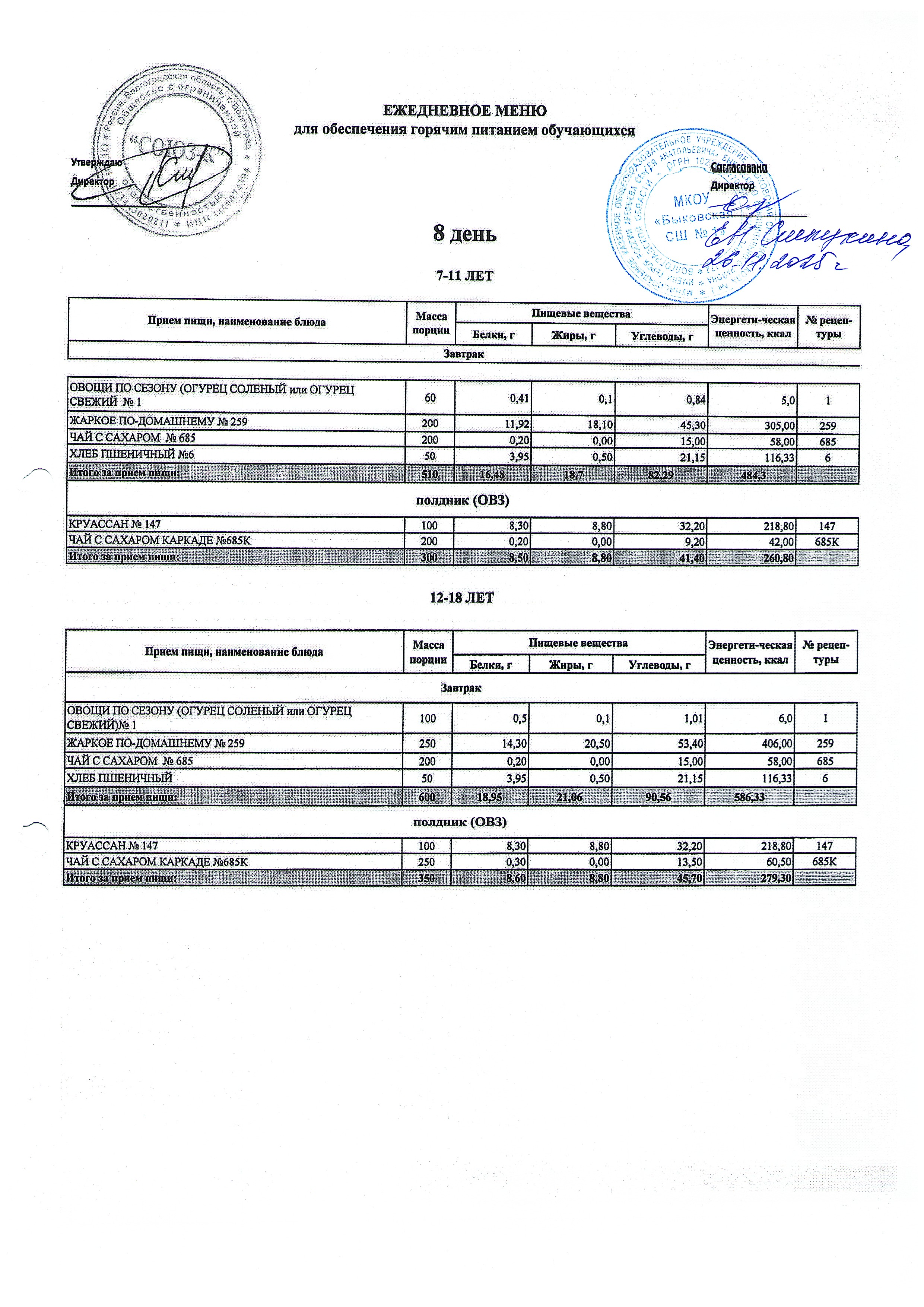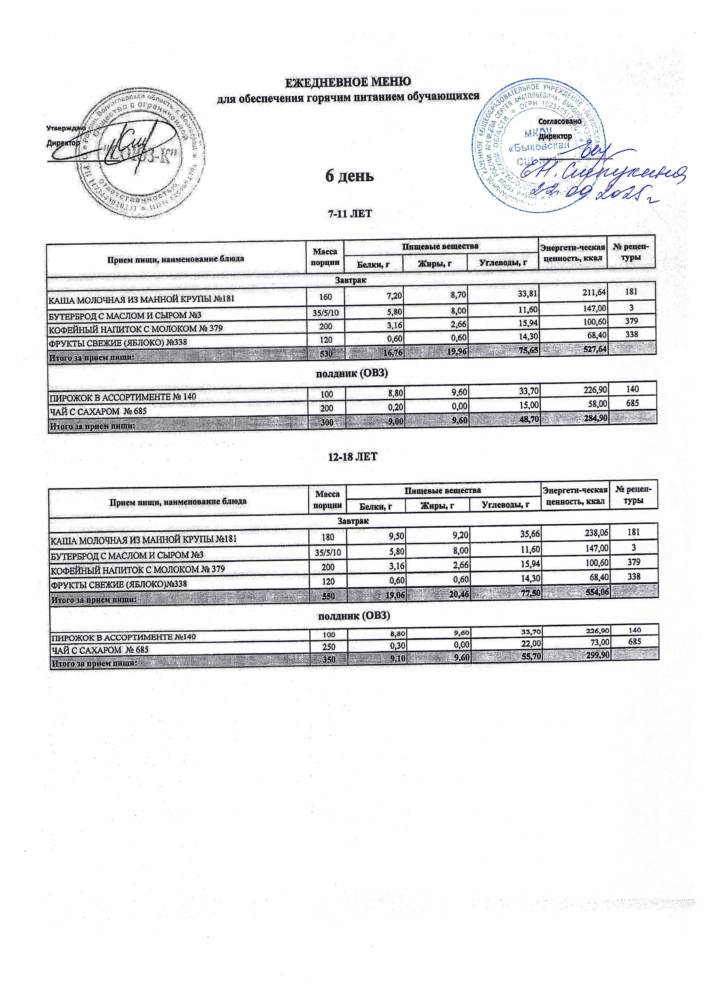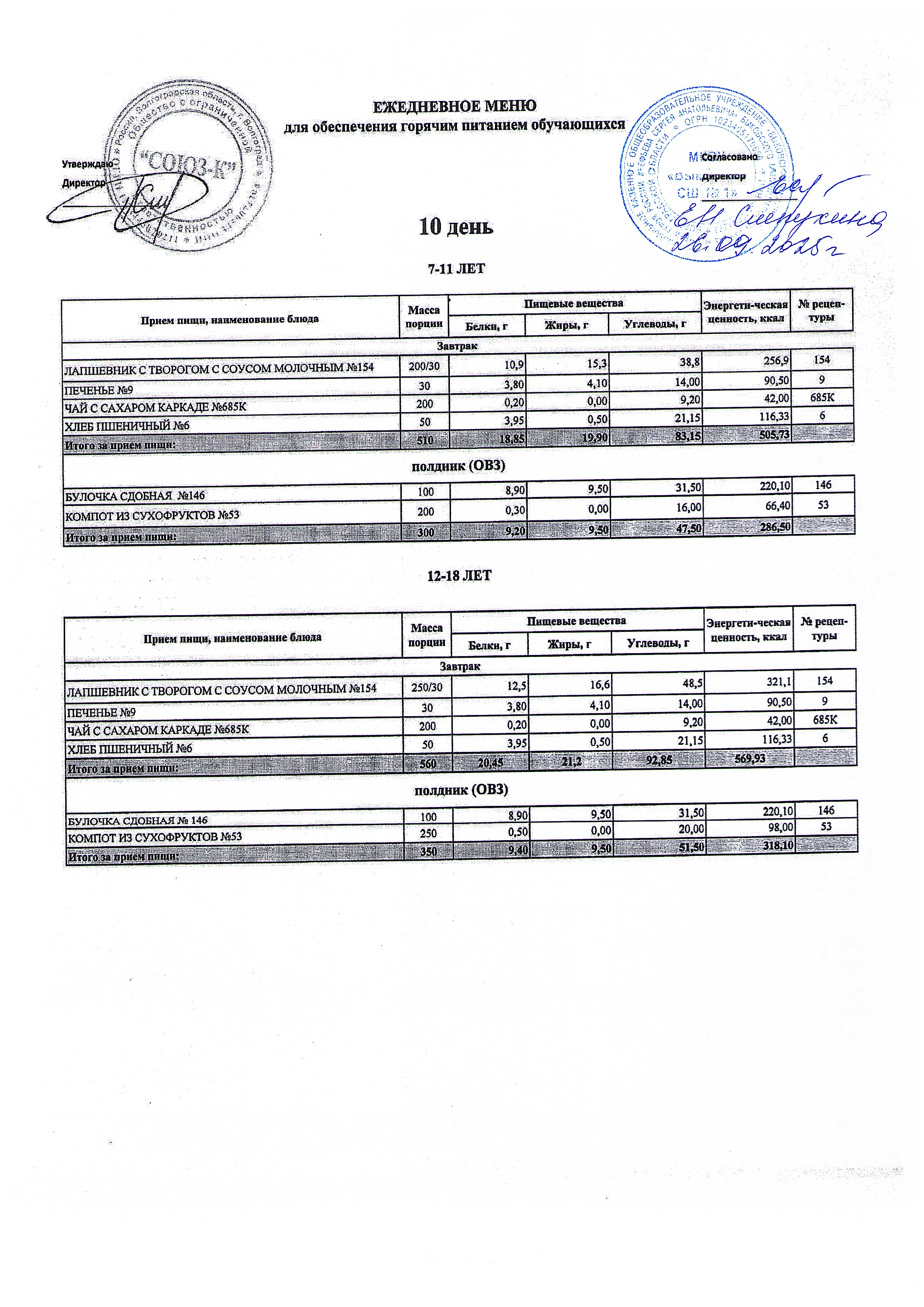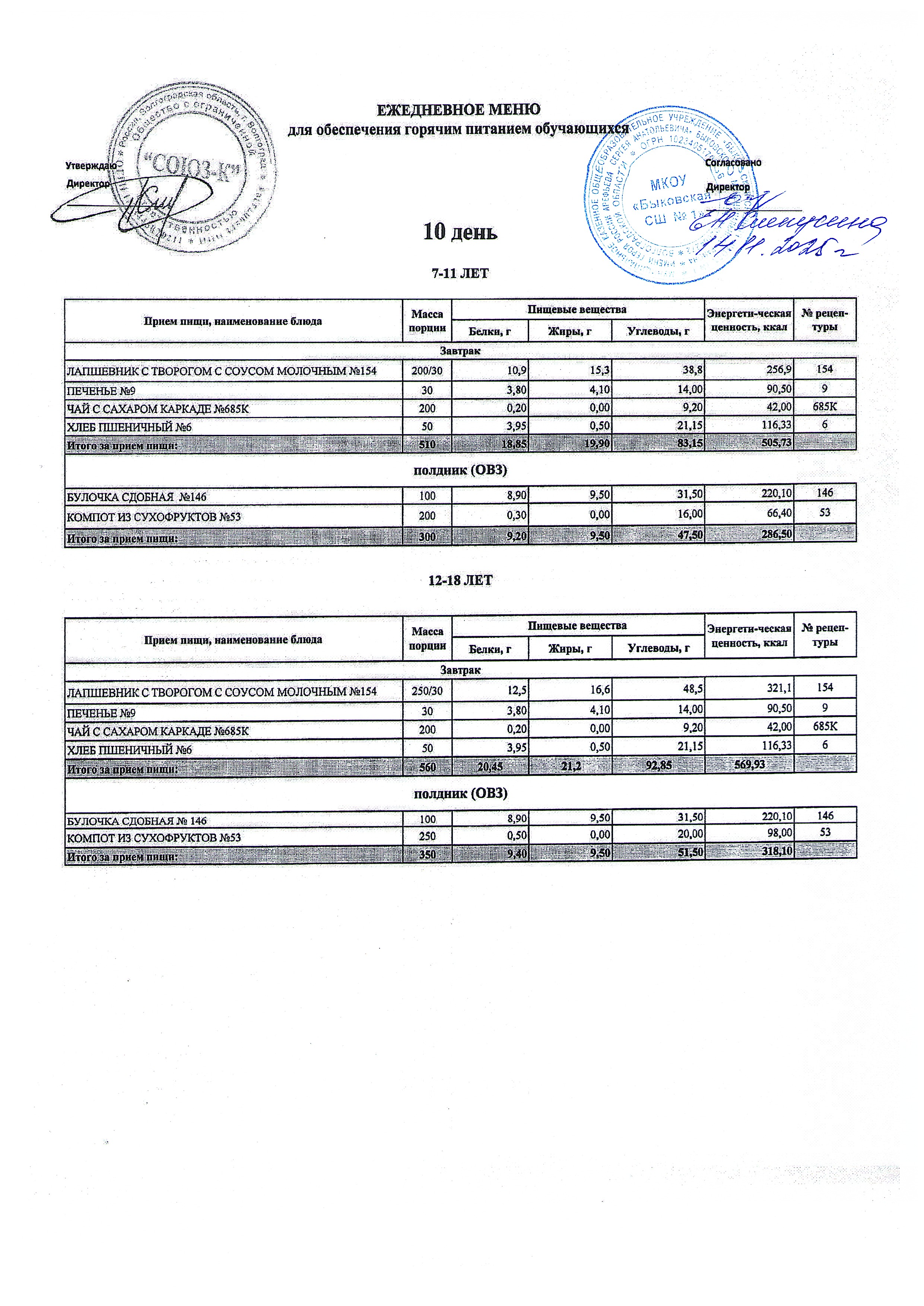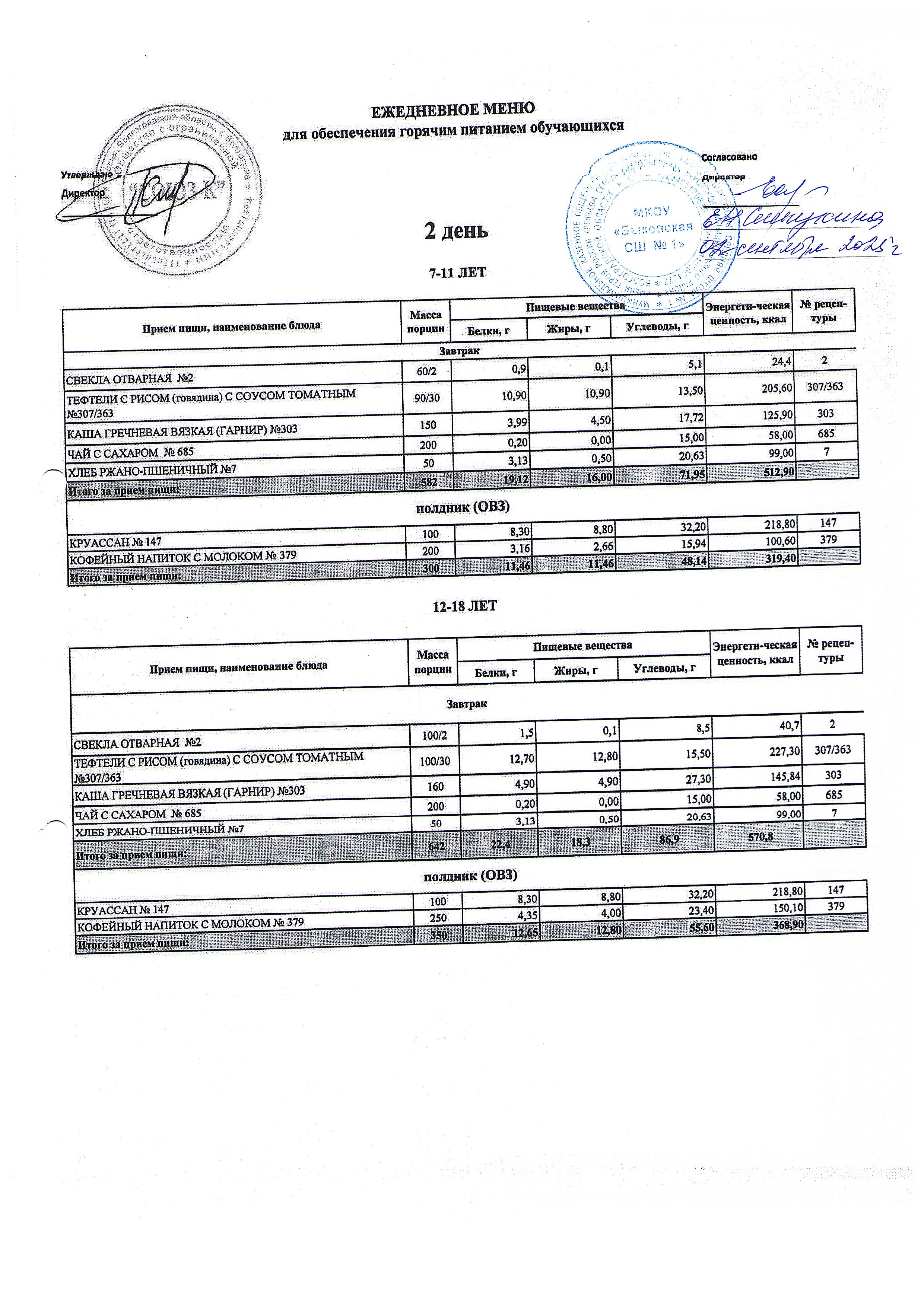 - примерное диетическое цикличное меню для 11-18 лет (5-11 классы) - отсутствует в ОО